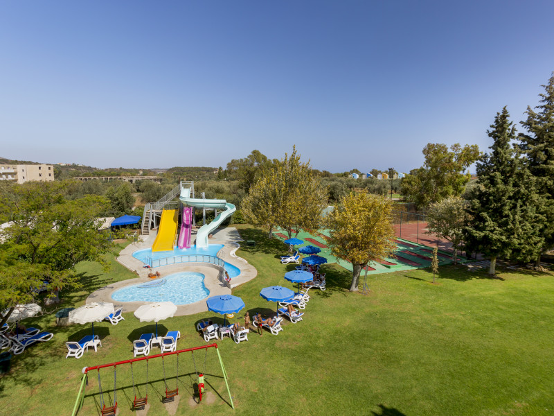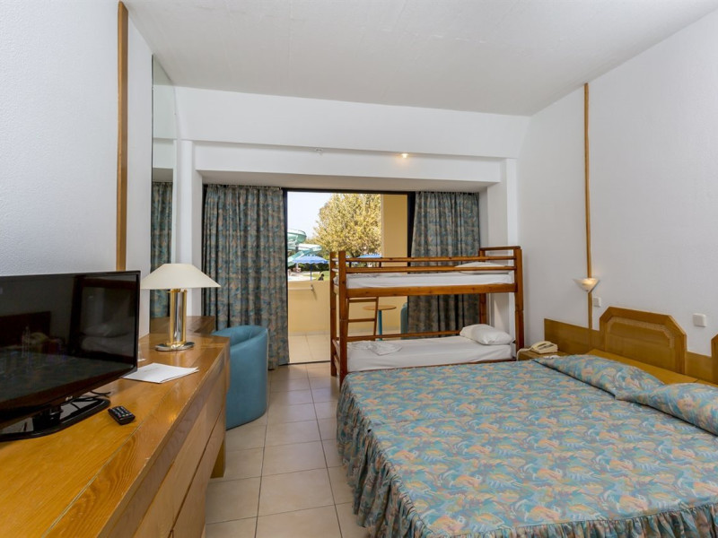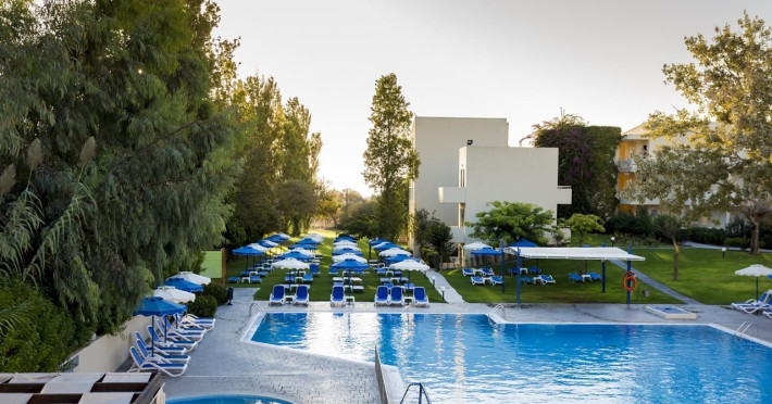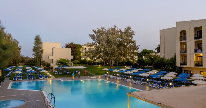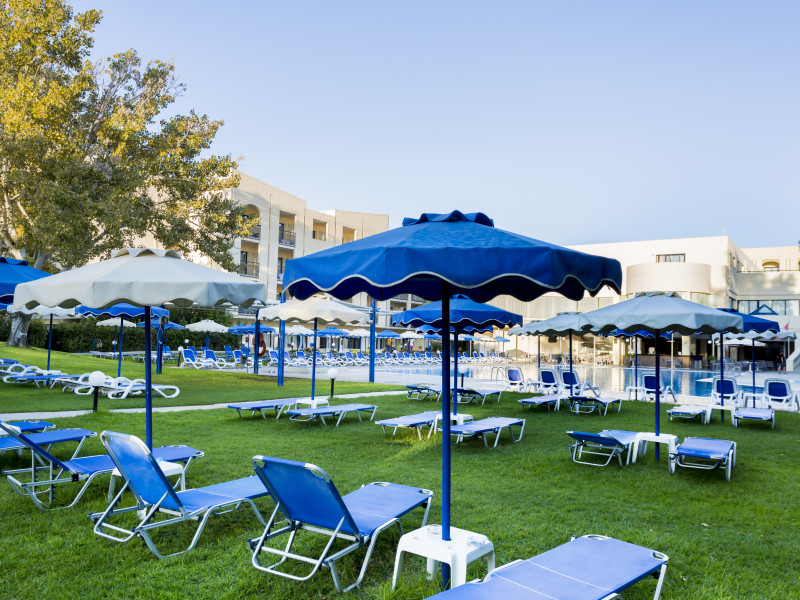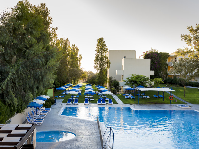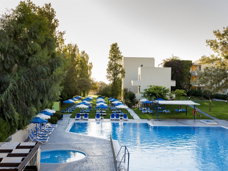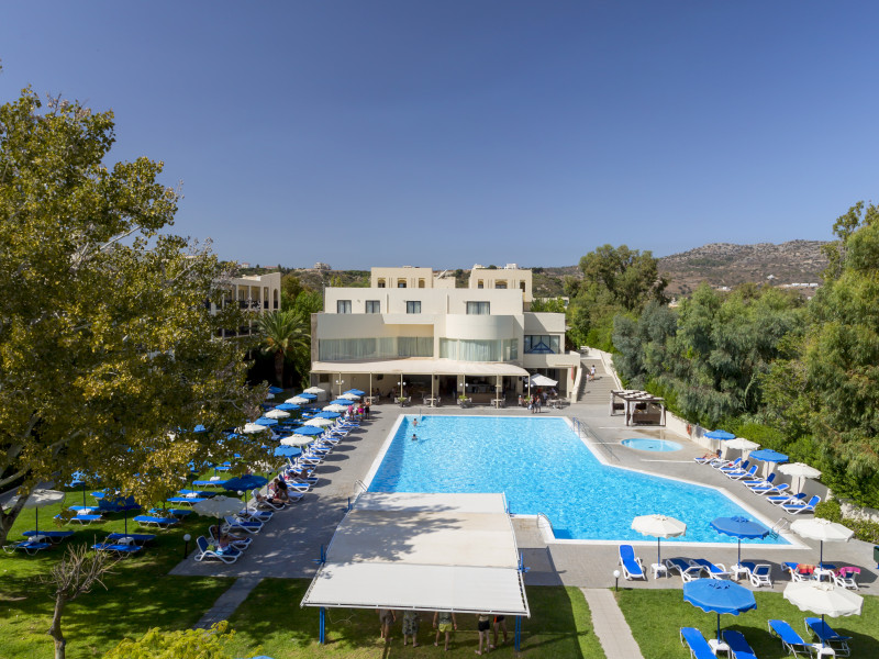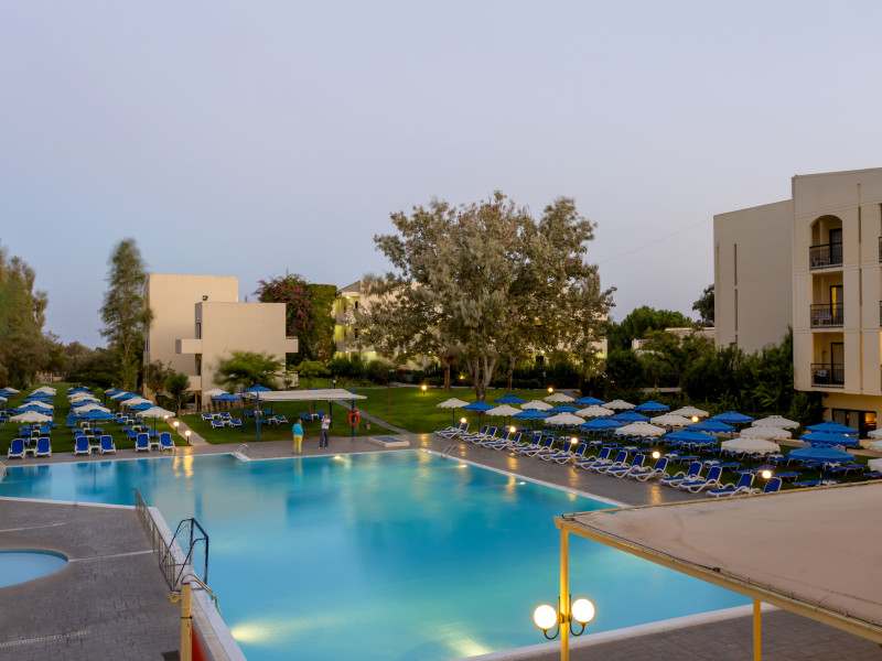 Hotel services include restaurants, bars, swimming pools, children's pool, kid'club, sunbeds and umbrellas, room service (extra charge), medical services (extra charge), sauna (extra charge), Jacuzzi (extra charge), massage (extra charge), laundry and ironing services (extra charge), telephone (extra charge), hairdresser (extra charge), sport facilities, mini golf, beach towels, Wi-Fi,Room services mini fridge, safe, Wi-Fi, balcony or terrace, bathroom with hairdryer, bathtube or shower, telephone, TV, air conditioning.In case of choosing the option of "all inclusive":The All Inclusive-concept includes all meals (breakfast, lunch, dinner and snacks) and mealtime drinks such as soft drinks, beer, wine, water and alcoholic drinks, all of local brands. Drinks are served from morning until late evening (approx until 22.00 -24.00 hrs). Opening times vary between different hotels. In certain hotels the activities program is also included.Please note the above facilities may be closed due to weather / seasonal conditions.Address: Golf Afantou, 85103, Rhodes, Greece.
