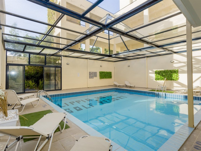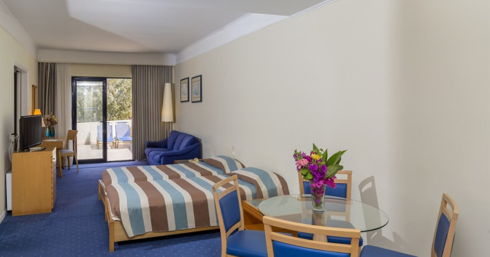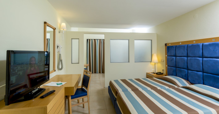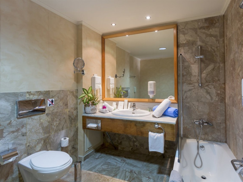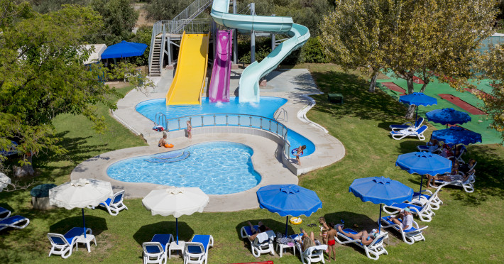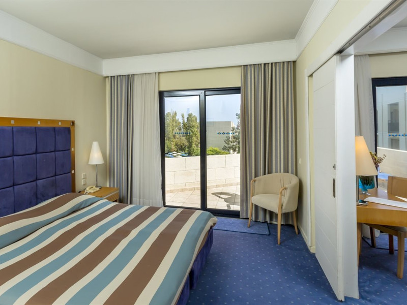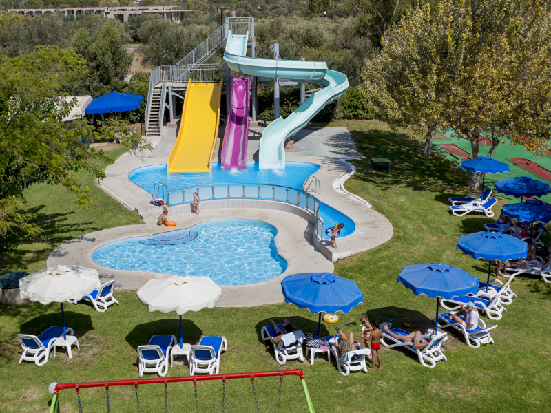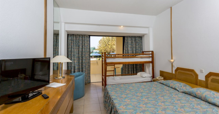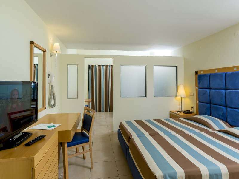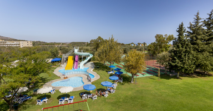 Hotel services include restaurants, bars, swimming pools, children's pool, kid'club, sunbeds and umbrellas, room service (extra charge), medical services (extra charge), sauna (extra charge), Jacuzzi (extra charge), massage (extra charge), laundry and ironing services (extra charge), telephone (extra charge), hairdresser (extra charge), sport facilities, mini golf, beach towels, Wi-Fi,Room services mini fridge, safe, Wi-Fi, balcony or terrace, bathroom with hairdryer, bathtube or shower, telephone, TV, air conditioning.In case of choosing the option of "all inclusive":The All Inclusive-concept includes all meals (breakfast, lunch, dinner and snacks) and mealtime drinks such as soft drinks, beer, wine, water and alcoholic drinks, all of local brands. Drinks are served from morning until late evening (approx until 22.00 -24.00 hrs). Opening times vary between different hotels. In certain hotels the activities program is also included.Please note the above facilities may be closed due to weather / seasonal conditions.Address: Golf Afantou, 85103, Rhodes, Greece.