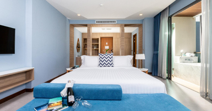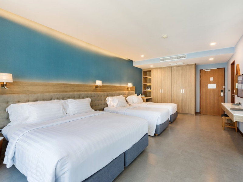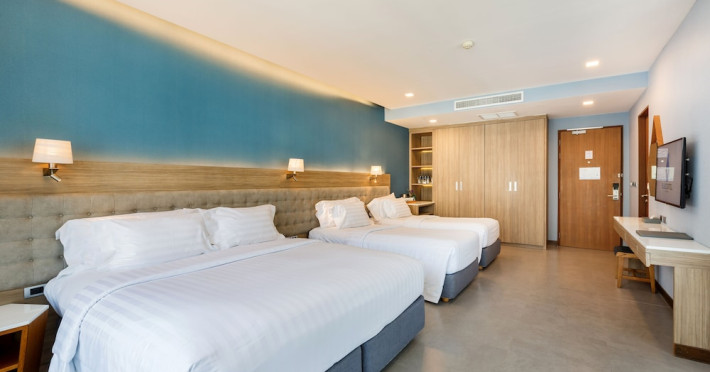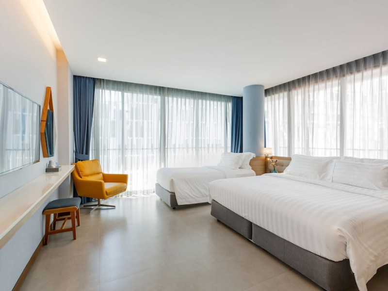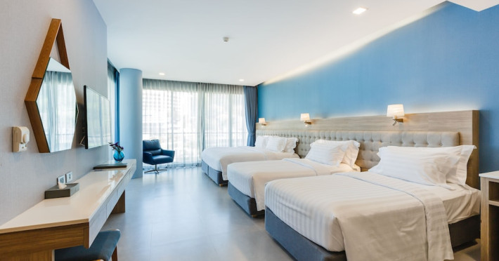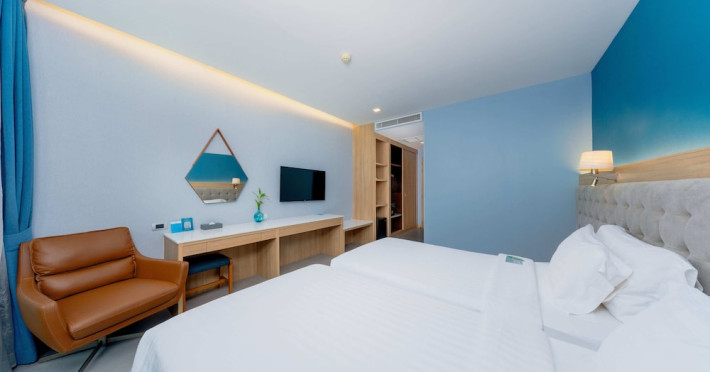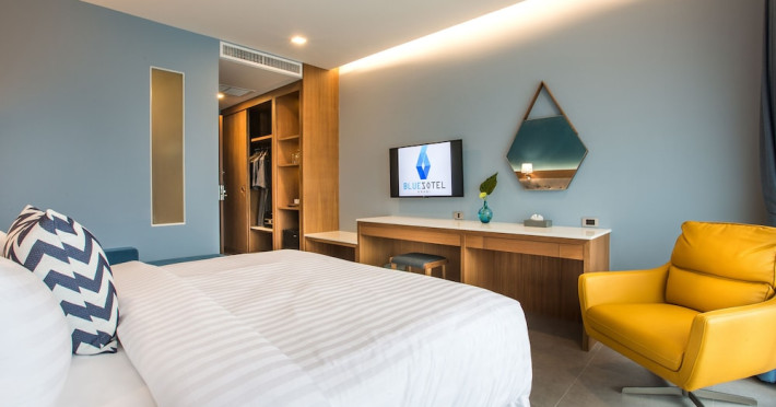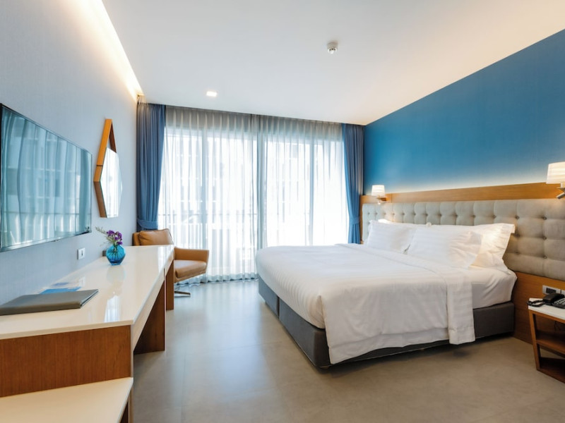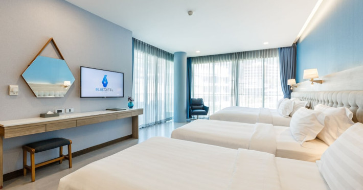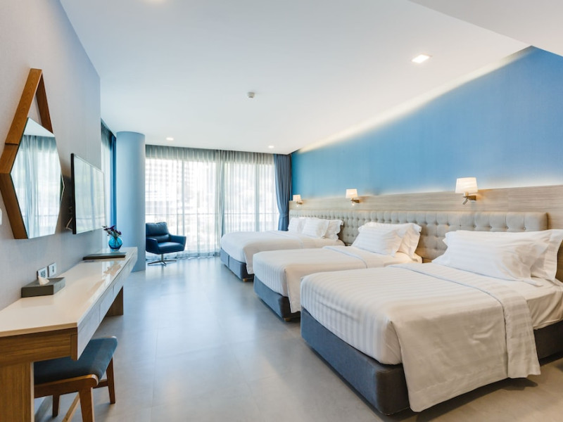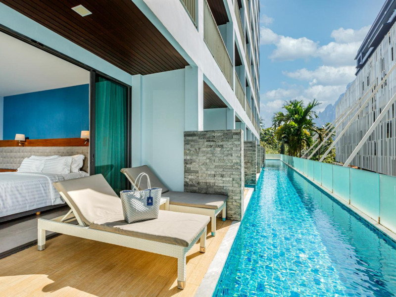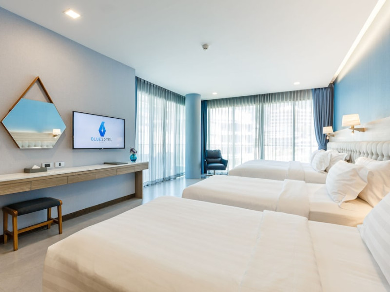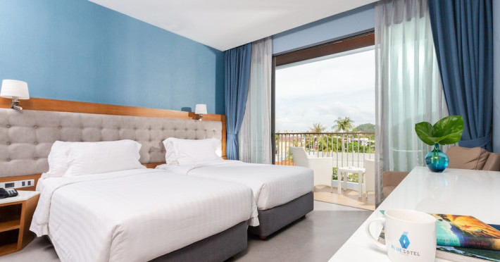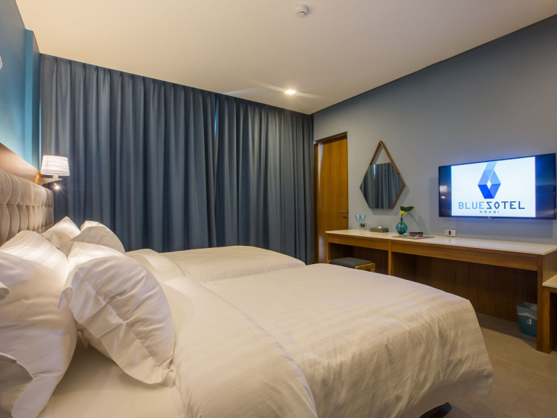 Located in the heart of Aonang Centre, BlueSotel Krabi offers a convenient location close to beaches, shopping, restaurants, and nightlife. The hotel features modern rooms with warm tones, romantic lighting, and a blue color theme. Rooms include a private balcony, a bathroom with a separate bathtub and shower, and complimentary WiFi. The hotel offers an all-day dining restaurant serving Thai and international cuisine, a natural saltwater pool, a spa, a fitness center, and a pool bar. Additional amenities include a 24-hour front desk, concierge services, dry cleaning/laundry services, and meeting facilities. Airport shuttle service and free self-parking are available. Guests can enjoy recreational amenities such as the outdoor pool and fitness center. The BLUESOTEL KRABI is a hotel.