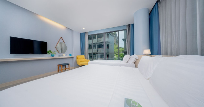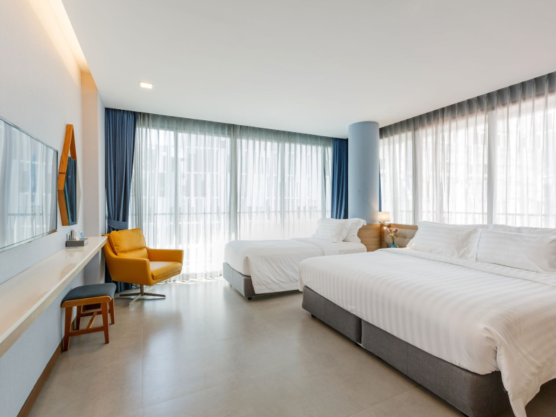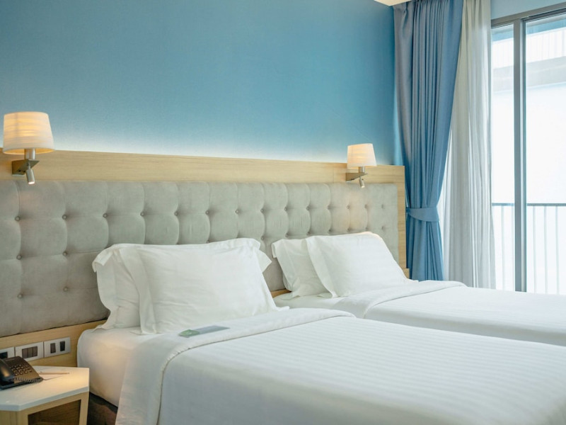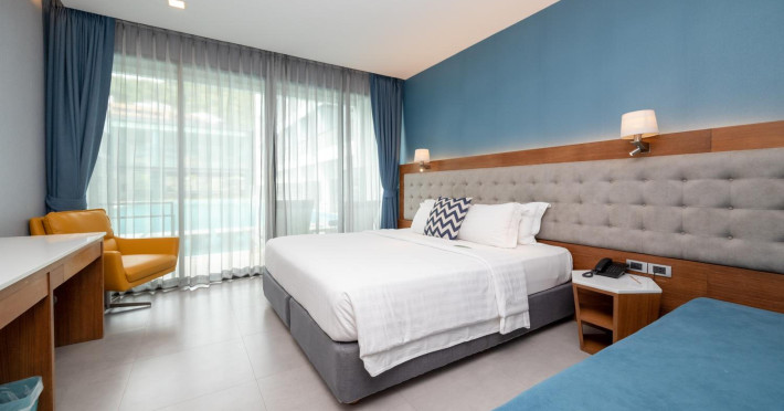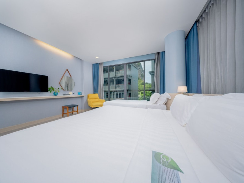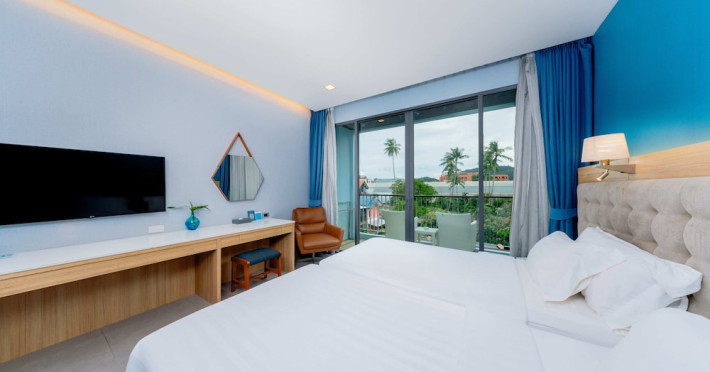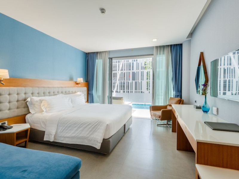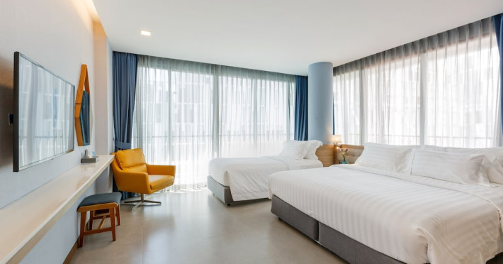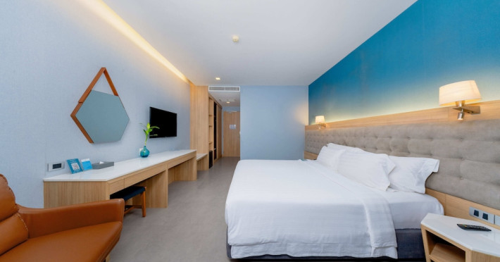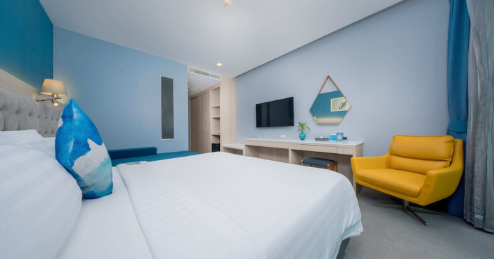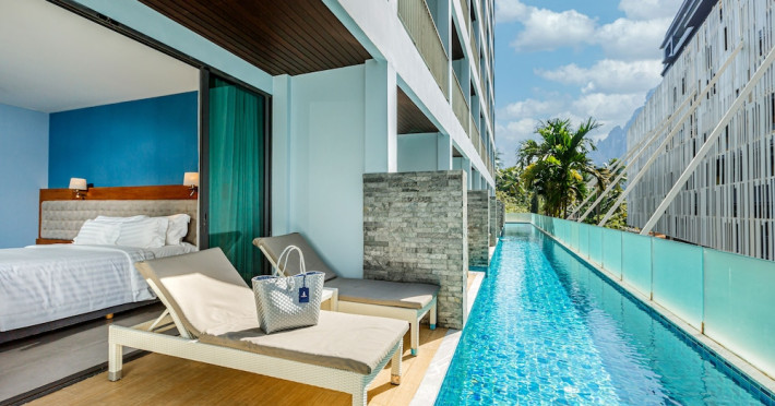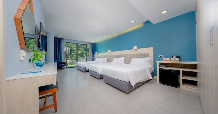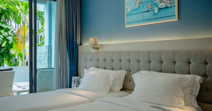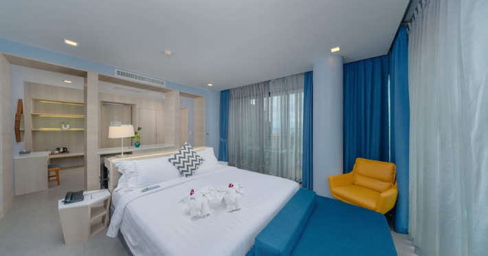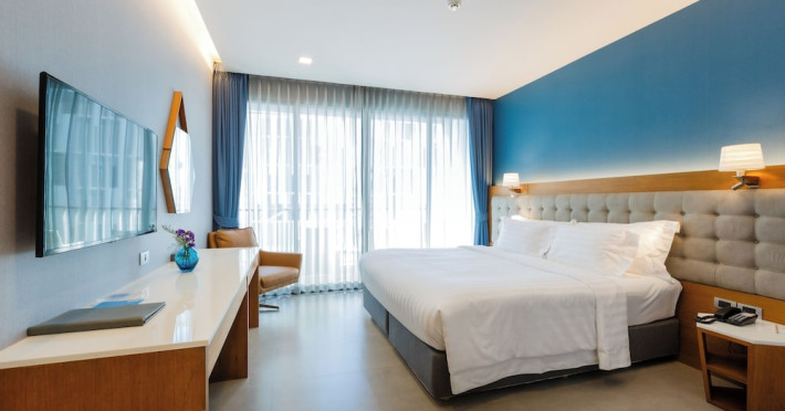 Located in the heart of Aonang Centre, BlueSotel Krabi offers a convenient location close to beaches, shopping, restaurants, and nightlife. The hotel features modern rooms with warm tones, romantic lighting, and a blue color theme. Rooms include a private balcony, a bathroom with a separate bathtub and shower, and complimentary WiFi. The hotel offers an all-day dining restaurant serving Thai and international cuisine, a natural saltwater pool, a spa, a fitness center, and a pool bar. Additional amenities include a 24-hour front desk, concierge services, dry cleaning/laundry services, and meeting facilities. Airport shuttle service and free self-parking are available. Guests can enjoy recreational amenities such as the outdoor pool and fitness center. The BLUESOTEL KRABI is a hotel.