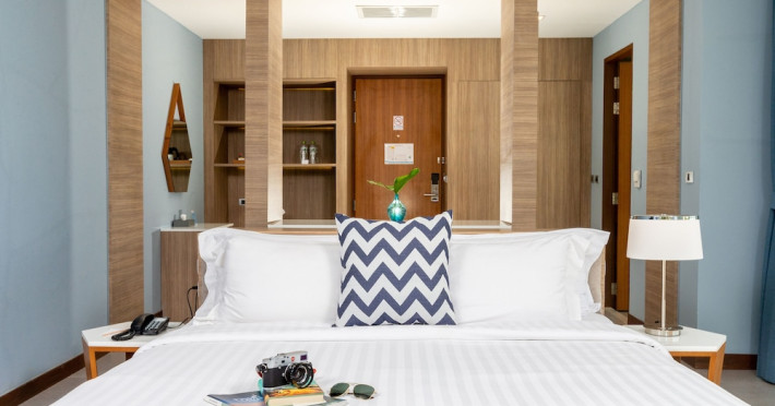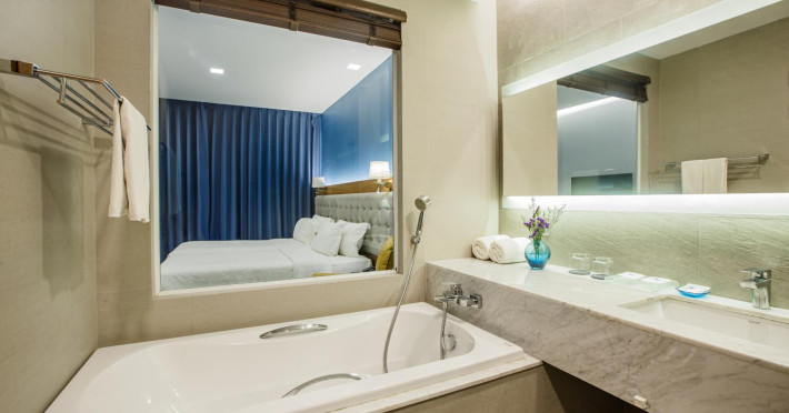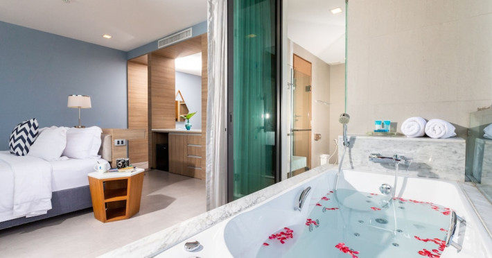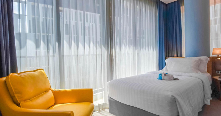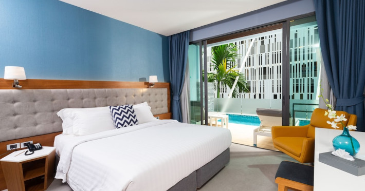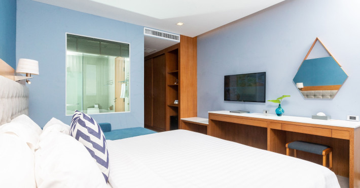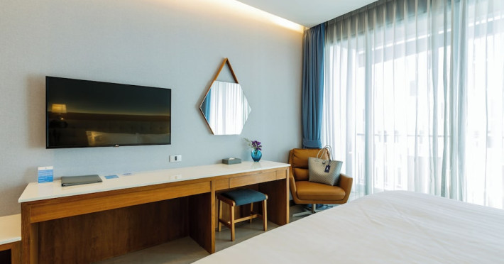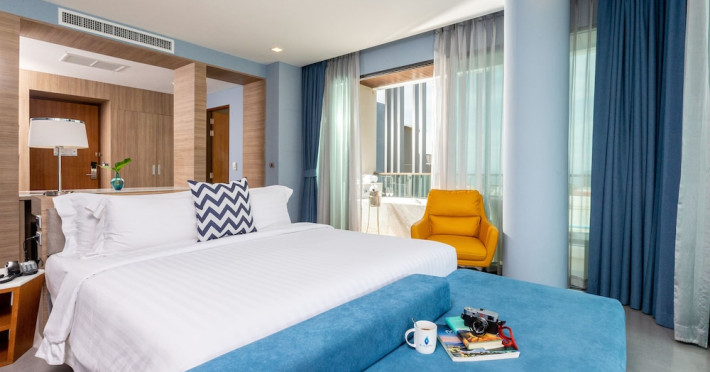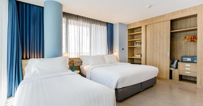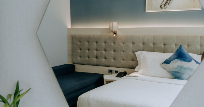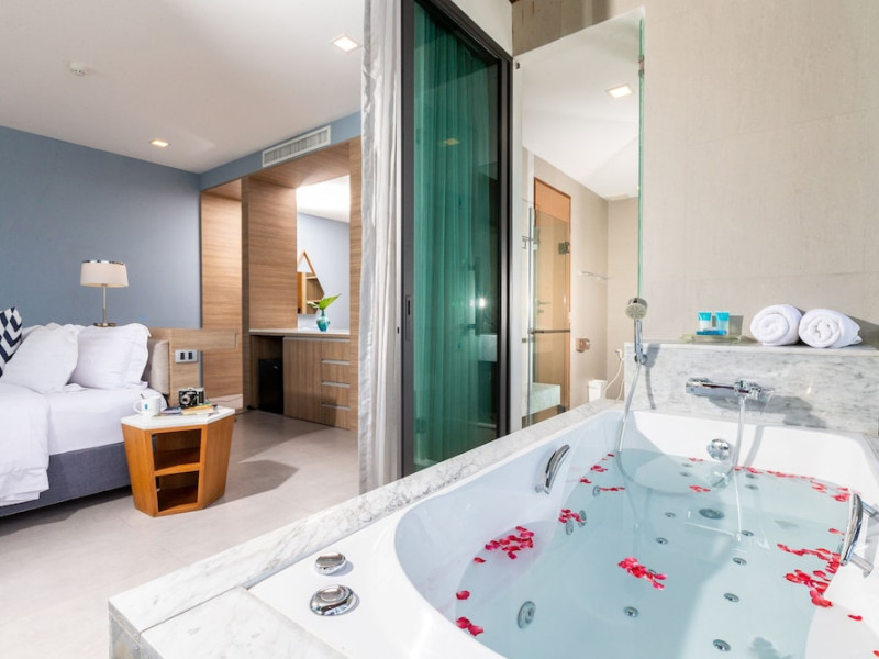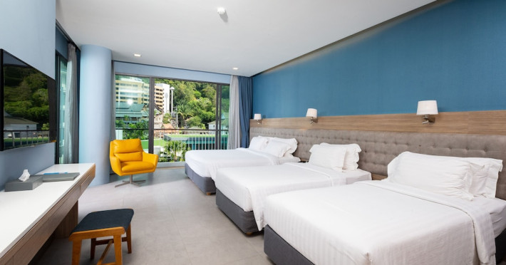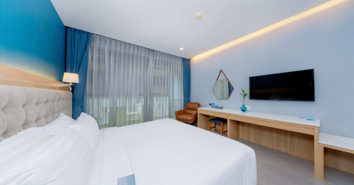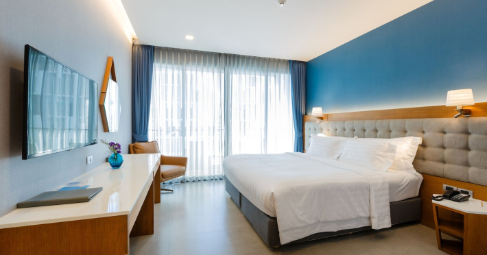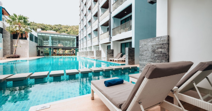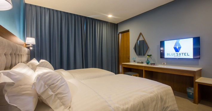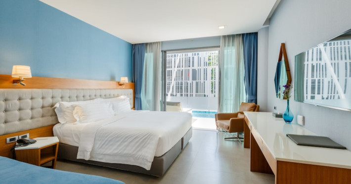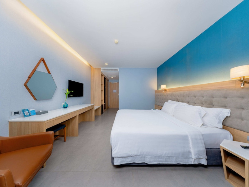 Located in the heart of Aonang Centre, BlueSotel Krabi offers a convenient location close to beaches, shopping, restaurants, and nightlife. The hotel features modern rooms with warm tones, romantic lighting, and a blue color theme. Rooms include a private balcony, a bathroom with a separate bathtub and shower, and complimentary WiFi. The hotel offers an all-day dining restaurant serving Thai and international cuisine, a natural saltwater pool, a spa, a fitness center, and a pool bar. Additional amenities include a 24-hour front desk, concierge services, dry cleaning/laundry services, and meeting facilities. Airport shuttle service and free self-parking are available. Guests can enjoy recreational amenities such as the outdoor pool and fitness center. The BLUESOTEL KRABI is a hotel.