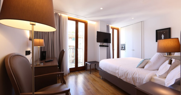 Located in the heart of Palma de Mallorca, in the historic La Lonja quarter, BO Hotel is housed in a renovated 19th-century building that blends contemporary style with traditional Majorcan details. It is within a 5-minute walk of Passeig del Born and Placa de la Reina, and a short walk from the Cathedral of Santa Maria of Palma. The hotel offers a restaurant, bar/lounge, sun terrace, and hot tub. Guests can enjoy on-site massages and take advantage of concierge services. The hotel features complimentary newspapers in the lobby, dry cleaning/laundry services, and a 24-hour front desk. WiFi is available throughout the property. Each air-conditioned room features a smart TV with satellite channels, coffee facilities, a private bathroom with a rainfall shower, complimentary toiletries, a hairdryer, and a balcony. Some rooms offer sea or city views, and superior rooms have a spa bath. Breakfast is available daily. The hotel offers bike hire, and the area is popular for golfing and cycling. An airport shuttle is available for a surcharge. The BO Hotel Palma is a hotel.