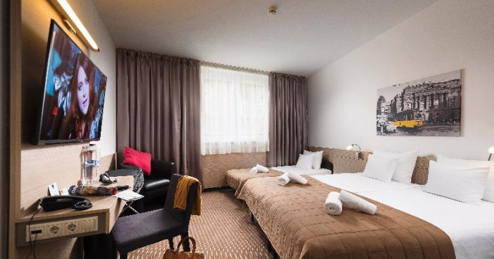 Units include 45 non-smoking rooms located in a 6-storey main building and an auxiliary building. The reception desk is open round the clock. Amenities include a baggage storage service and a safe. Wireless internet access allows guests to stay connected while on holiday. The tour desk offers assistance with booking excursions. The hotel has a range of facilities for guests with disabilities. The hotel has wheelchair-accessible facilities and a lift. Children can enjoy the playground. Additional amenities include a TV room and a playroom. Parking spaces are available to guests travelling by car. Other services include a babysitting service, a childcare service, a car hire service, medical assistance, a transfer service, room service, an alarm call service, a laundry service and a hotel shuttle bus. Active guests who wish to explore the surrounding area by bike will appreciate the bicycle hire service. Bicycle storage is also available. A business centre with fax machine and photocopier is available.