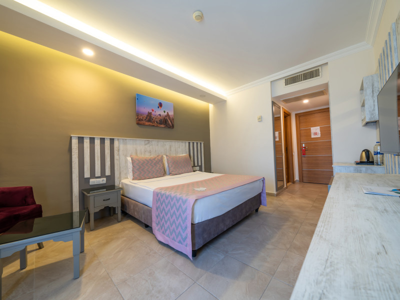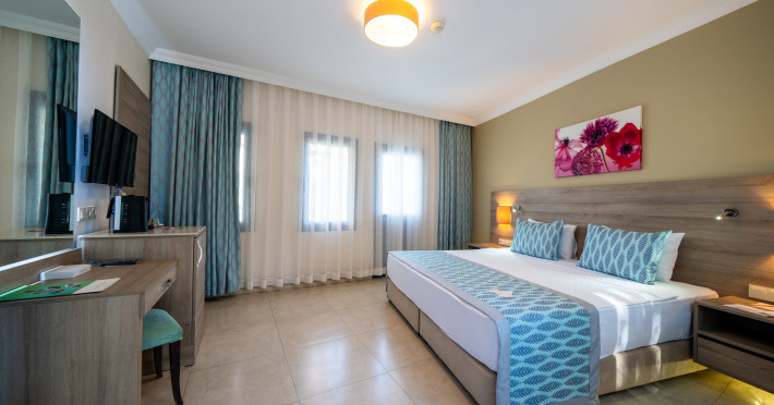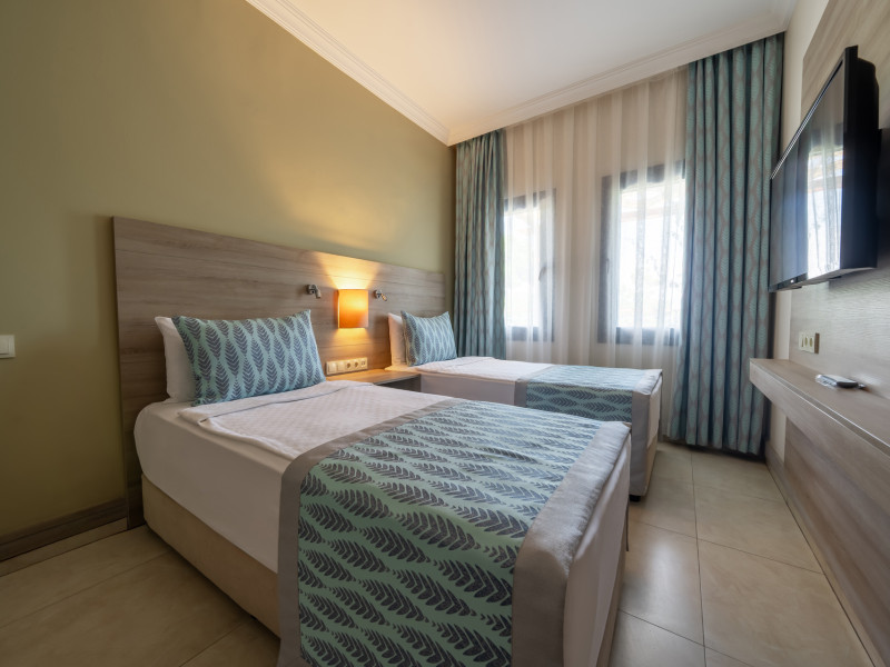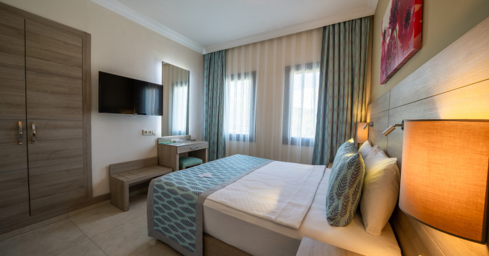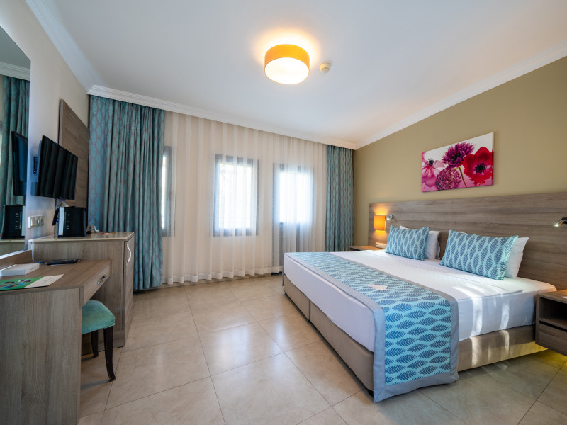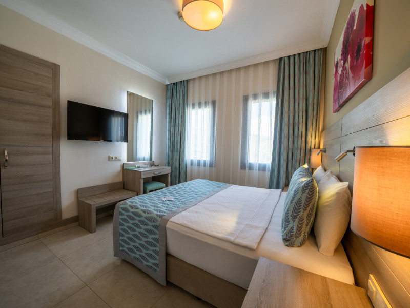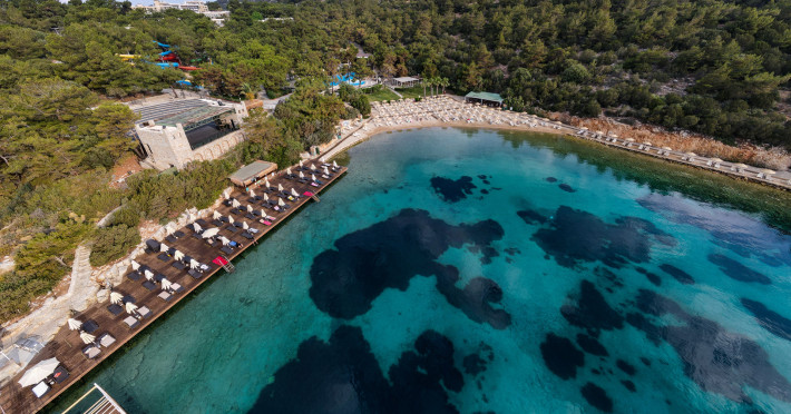 The hotel Bodrum Park Resort is located in the vicinity of a private sandy beach. A supermarket is around 2 km away. There is a shuttle between the hotel and the airport (for a fee). On the beach are beach towels for a fee as well as sun loungers andThe hotel Bodrum Park Resort is located in the vicinity of a private sandy beach. A supermarket is around 2 km away. There is a shuttle between the hotel and the airport (for a fee). On the beach are beach towels for a fee as well as sun loungers and cushions available. Cold drinks are served at the bar on the beach. To reach the beach a shuttle is provided. The seasonally air-conditioned, GPS-verified hotel has a 24h reception, a lobby bar, internet access, a supermarket and other shops, a boutique, a hairdresser, a first aid kit, parking spaces (limited) as well as a TV lounge with satellite TV. In the outdoor area of the property you will find a garden as well as a pool that is open seasonally, where you can rent pool towels for a fee. For children there is also a childrens pool with a non-swimming area as well as 5 water slides. Furthermore, outside you can find a roof terrace. Inside the hotel you can use a heated indoor pool. You can store your valuables in the safe, and your luggage in the hotels storage room. In addition, the hotel Bodrum Park Resort is video-monitored 24h a day. For your entertainment, the hotel offers a disco. For the young hotel guests there is a playground. For very young guests, kids chairs can also be provided. There is also a laundry service available at an additional cost to customers. Ironing equipment can be rented at the hotel for a fee. For your comfort the hotel page will ensure you are looked after. If necessary, you can contact the medical centre at any time (for a fee). The energy supply is 220 Volts. If you want to explore the holiday region, you can use the car rental service close to the hotel (extra fee). At the hotel reception, tickets are offered for excursions in the area. For guests on their honeymoon, the hotel has special offers such as a basket of fruit in the room. In your hotel, a lot of focus is placed on sustainability. This includes the provision of soap, shampoo and lotion dispensers and environmentally-friendly cleaning. That is why the hotel Bodrum Park Resort was also awarded a sustainability certificate. The hotel requires that all guests pay a deposit upon arrival. Euro/Master Card and Visa are accepted as means of payment. Catering As catering services the hotel offers all-inclusive. Breakfast is offered from the buffet. Lunch and dinner are also served from the buffet. All Inclusive Light includes local alcoholic beverages. As part of the all-inclusive service, local alcoholic beverages (24h) as well as international alcoholic beverages (limited) are available at no extra charge. For the meals, there are a restaurant with terrace (Italian, Mediterranean and calorie-reduced dishes) and several bars as well as the pool bar. Appropriate clothing is required for lunch and dinner. Distances Bus stop: approximately at 150 m Taxi rank: approximately at 100 m Sports amp; Leisure For an fee, you can take advantage of various water sports, such as bananaboats. With beach volleyball and darts various other sports offer a lot of variety on holiday. In addition to a tennis court (hard court) there is also a tennis rental. A sauna awaits you in the hotels own wellness area. The hotel also offers massages (extra fee). Infants can be looked after in the hotels own baby club. For older children the care takes place in the childrens club. There is a babysitting service (extra fee) in the hotel, so that adults can also find some time to relax. Junior hotel guests can also let off steam in the mini disco. In terms of adult entertainment, evening shows and live music are presented. Additional information The 3-storey hotel has a total of 288 rooms. Larger groups of young people under the age of 25 are not allowed in this property, as this is a hotel especially for families. This hotel is gay-friendly. The hotel staff speak English, German, Russian and Turkish.