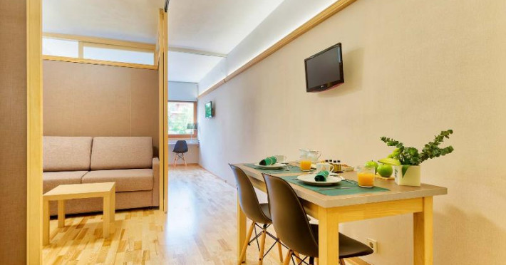 2 suites and 21 apartments are located on 6 storeys and can be reached by lift. Multilingual staff (English, German, French) at the reception are happy to assist guests at the reception desk round the clock. Check-in and check-out are available 24 hours a day. Services and facilities include a baggage storage service, a safe, a car hire service, room service, a laundry service, a fax machine and a coin-operated laundry. Wireless internet access is provided in public areas. The tour desk offers assistance with booking excursions. The apartment hotel has a range of facilities for guests with disabilities. Guests arriving by car can park their vehicles in the garage (for a fee) or in the car park. Services include a hotel shuttle bus.