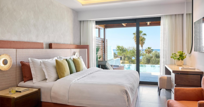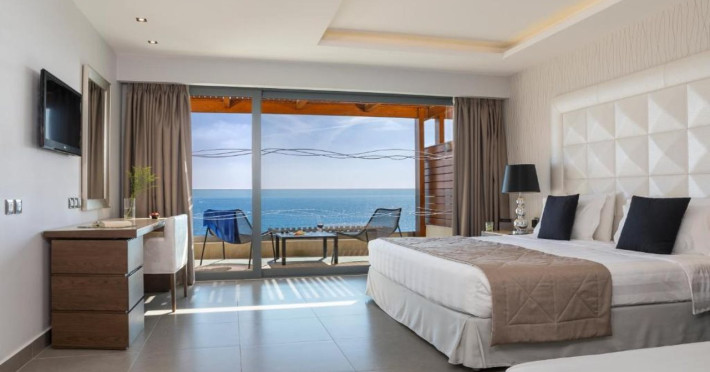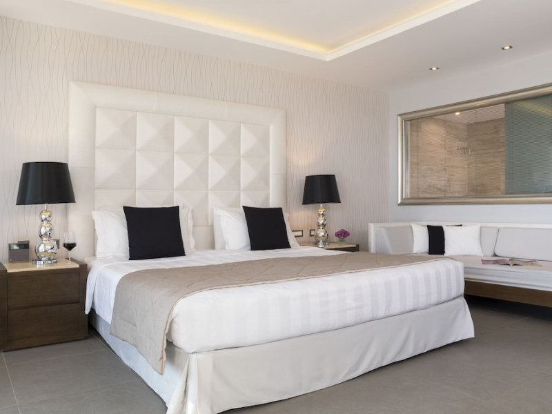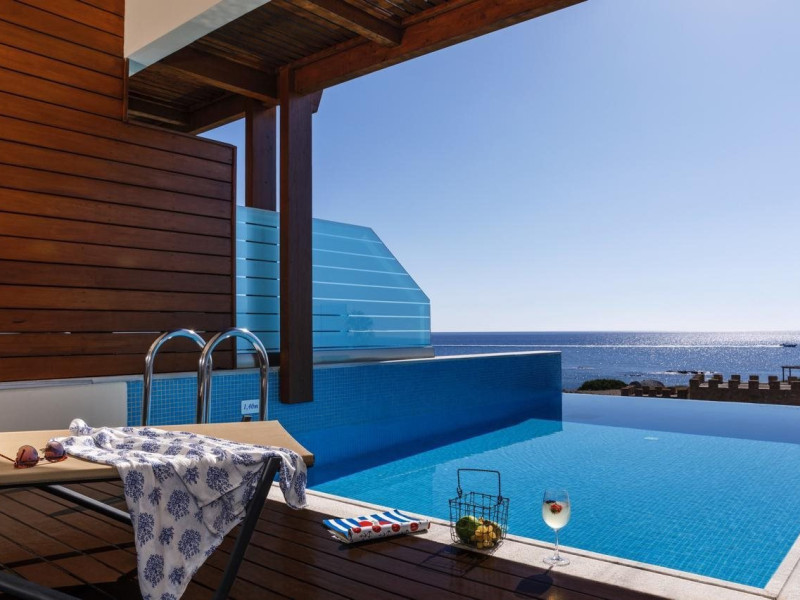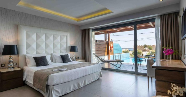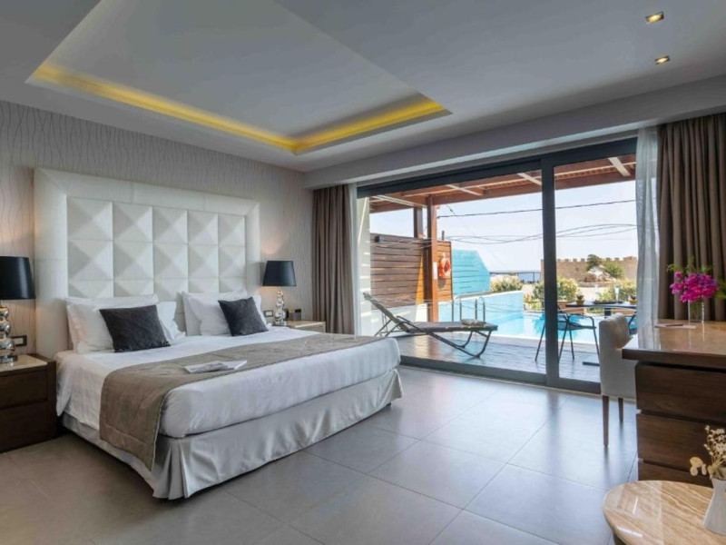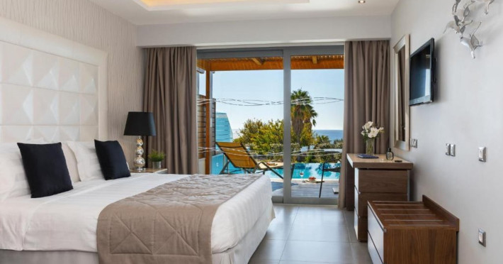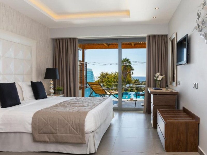 Facilities and services include multilingual staff, restaurant, bar, 24/7 room service (extra charge), live entertainment, spa, indoor pool, jacuzzi, hairdresser (extra charge), outdoor pool, gym, sauna, massage (extra charge), doctor on call (extra charge), business center (extra charge), meeting/banquet facilities (extra charge), Wi-Fi, car rental desk (extra charge), bicycle rental (extra charge), laundry service (extra charge) car park.Rooms feature coffee/tea-making facilities, hairdryer, TV, Wi-Fi, air-conditioning, mini-bar (extra charge), room service (extra charge), and telephone (extra charge).Junior Suites with a Pool also feature a capacity for 3 people.Suites Executive also features a separate living area and private pool.**Please note that some of the above facilities may be closed due to weather / seasonal conditions.**The program may change without prior notice**The hotel is Adults Only (16+)Address: Kiotari-South Rhodes, 85109 Rhodes, Rhodes, Greece.