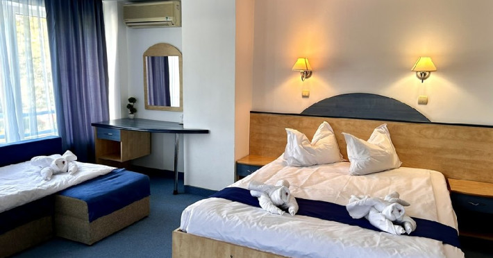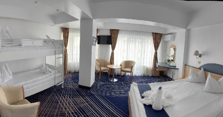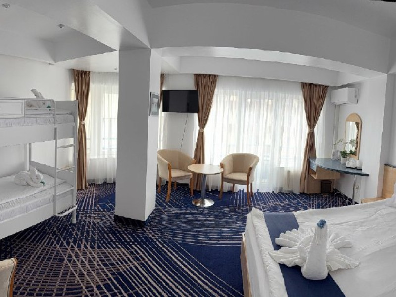 Facilitati copii in camera cu 2 adulti: - copiii intre 0-11.99 ani beneficiaza de gratuitate la cazare si mic dejun, fara pat suplimentar. - copiii intre 12-17.99 ani sunt considerati adulti si vor achita un loc integral (se asigura un singur pat pliant).