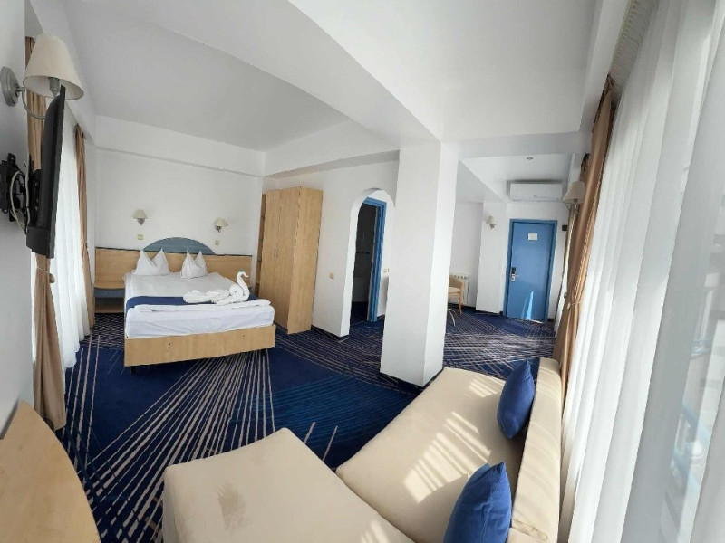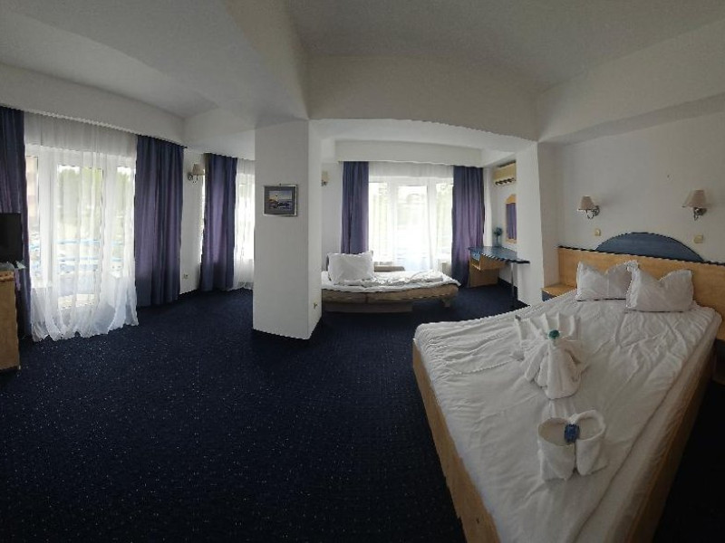 Dotari camere: Camerele duble standard sunt dotate cu pat matrimonial (160x200), LCD tv, aer conditionat, minibar, wireless internet, plase de tantari, baie cu cabina de dus si balcon mic, stil frantuzesc. Nu permit acomodarea unui pat suplimentar. Suprafata 17 mp. Camerele duble superioare sunt dotate cu pat matrimonial (160x200), LCD tv, aer conditionat, minibar, wireless internet, plase de tantari, baie cu cabina de dus si balcon mic, stil frantuzesc. Se permite acomodarea unui pat suplimentar. Suprafata 22 mp. Camerele duble family dispun de pat matrimonial (160x200), o canapea extensibila, LCD tv, aer conditionat, minibar, wireless internet, plase de tantari, baie cu cada si balcon mic, stil frantuzesc. Suprafata 33 mp. Studiourile sunt prevazute cu pat matrimonial (160x200), o canapea extensibila, LCD tv, aer conditionat, minibar, wireless internet, plase de tantari, baie cu cada si balcon mic, stil frantuzesc. Suprafata 30 mp. Repartizarea camerelor se face la receptie, in functie de disponibilitatea de la momentul cazarii. Patul suplimentar este de tip pliant.
