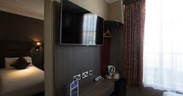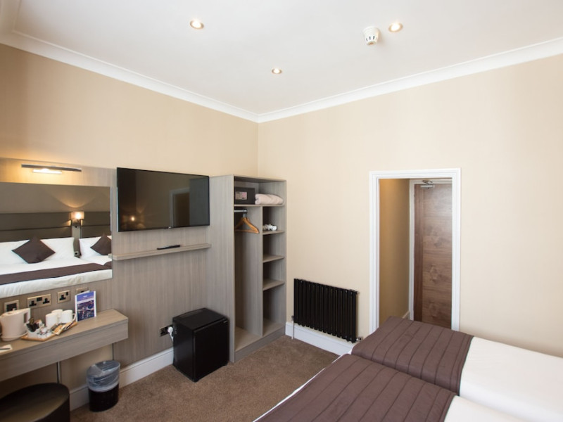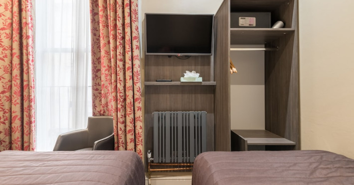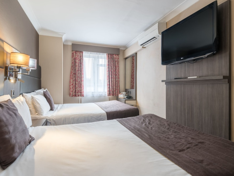 Located in central London's Bayswater neighborhood, the Brunel Hotel offers a central stay near Kensington Gardens and Hyde Park. The hotel features 40 guestrooms equipped with LCD TVs, digital programming, and complimentary Wi-Fi. Each room includes a private bathroom with designer toiletries and a hair dryer, along with a laptop-compatible safe and a desk. A complimentary continental breakfast is served daily. The hotel provides concierge services, a 24-hour front desk, a business center, and complimentary newspapers in the lobby. Dry cleaning and laundry services are available. Paddington Station is a short walk away, offering convenient access to Heathrow Airport via the Heathrow Express. The hotel is a non-smoking property. Halal food options are available. The Brunel Hotel is a Tourist hotel. The nightlife/restaurants are right next to the hotel.