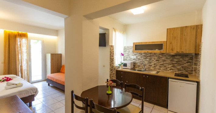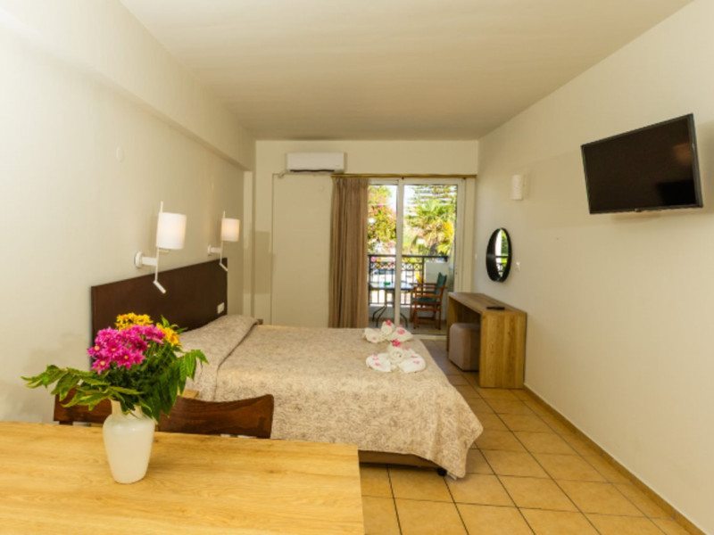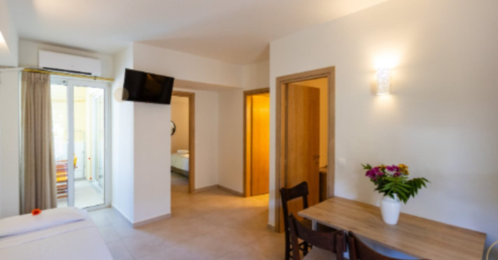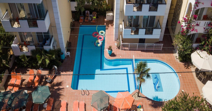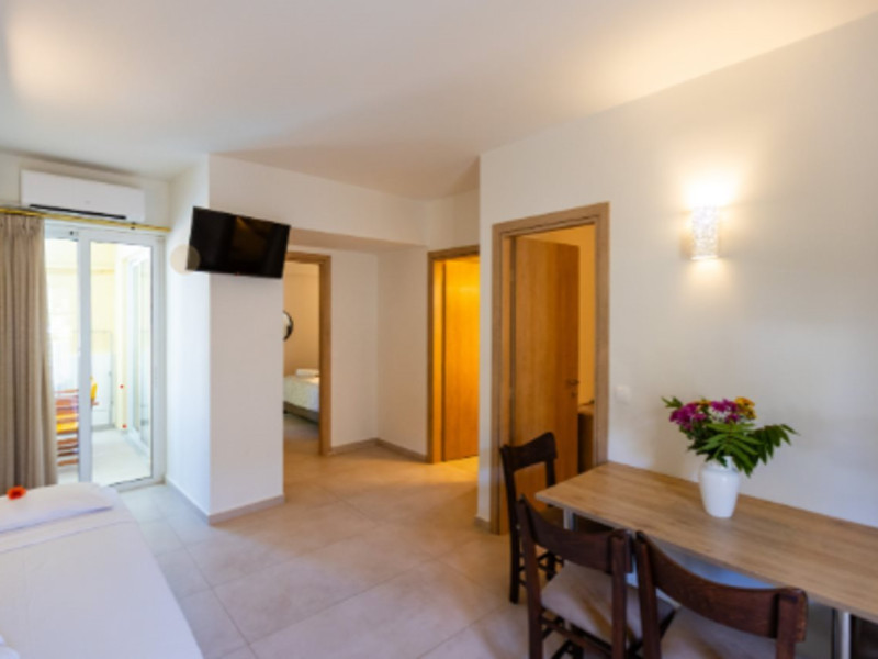 The property has 24-hour reception, Wi-Fi access, and complimentary parking. Guests can enjoy a large main pool on the beach and one smaller pool by the apartments, having a separated shallow end for children with sunbeds and parasols. The property has bars (serve all day long), a restaurant for daily breakfast buffet, and lounge area. Recreational activities include frisbee or ball games, a mini football field, areas with swings, slides, and seesaws, and a fenced outdoor toddler play area with children’s safe plastic toys. The hotel also offers exchange, credit card service, business services like fax and internet, mail postal services (stamps and express courier), car rental, excursions, doctor on call, and taxi. The hotel has air-conditioning rooms that feature a flat-screen TV with extra sofas, a multi-kitchen, kitchenware, a fridge, a kettle, a microwave, a private bathroom with a hairdryer, and a private balcony.Please note that some of the above facilities may be closed due to weather/seasonal conditions.