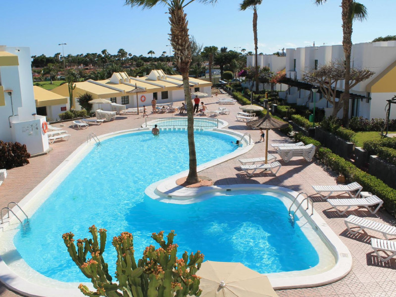 This aparthotel is situated just 3 kms from the beach in the tourist area of Maspalomas. The complex is nestled amidst a large garden setting which lends an air of calm and tranquility to the environment. The establishment comprises charming bungalows which feature a simplistic style and come well equipped with modern amenities for guests' convenience. The accommodation options offer a comfortable ambience in which guests can unwind in peace at the end of the day. Visitors are invited to lie back and relax in the pool area or to enjoy a refreshing swim. This family-friendly complex features a café and a restaurant offering guests delicious meals in a relaxing environment.Swimming pool with separate children’s area, each bungalow has terrace and individual garden, there is a reception area (with internet area), bar, terrace, supermarket, poolside snack bar and a badmington court.