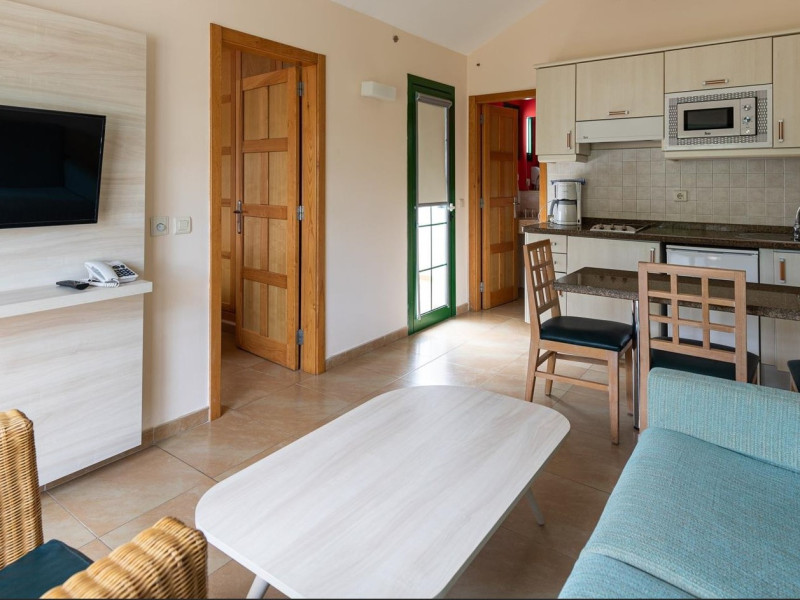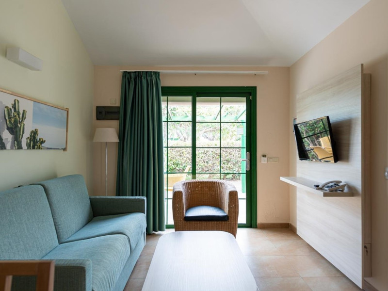 This cozy establishment Coridal Sandy Golf, of charming bungalows, next to the Maspalomas Golf Course, a short distance from the emblematic golden sand dunes of Maspalomas, is the perfect place to enjoy a relaxing holiday under the Maspalomas sun.These cozy bungalows, of approximately 52 m² with a large terrace where you can relax and enjoy the sun during your holidays. Completely renovated, include, separate living room, sofa bed in the living room, satellite TV, ceiling fan, fitted kitchen, with toaster, Microwave, water heater, coffee maker and free WIFI.In the gardens, there is the pool, (heated in winter).Meals are held at the Cordial Green Golf restaurant located a few meters away.