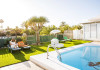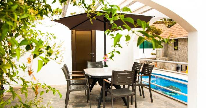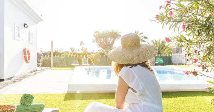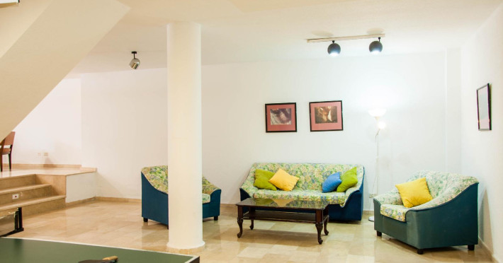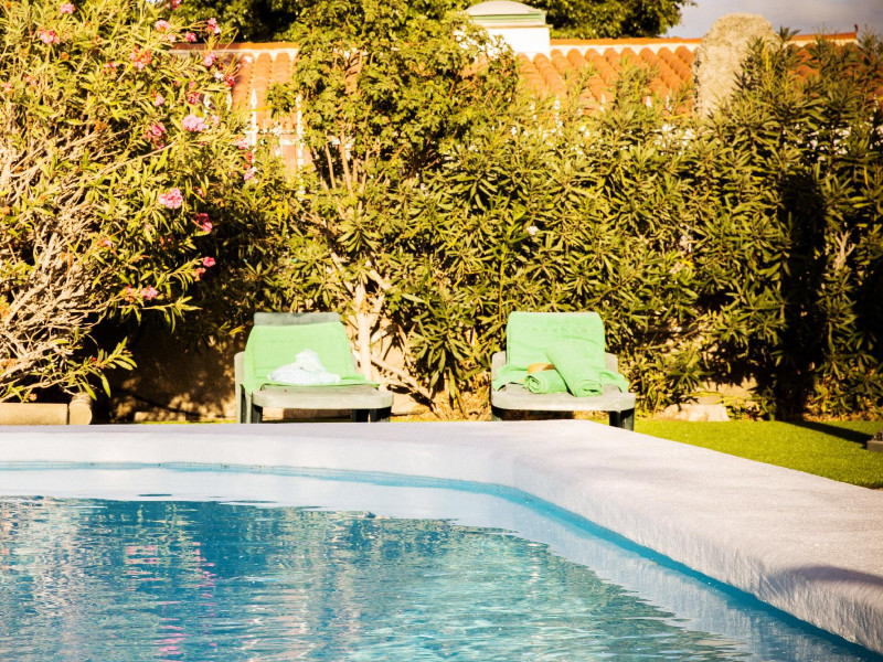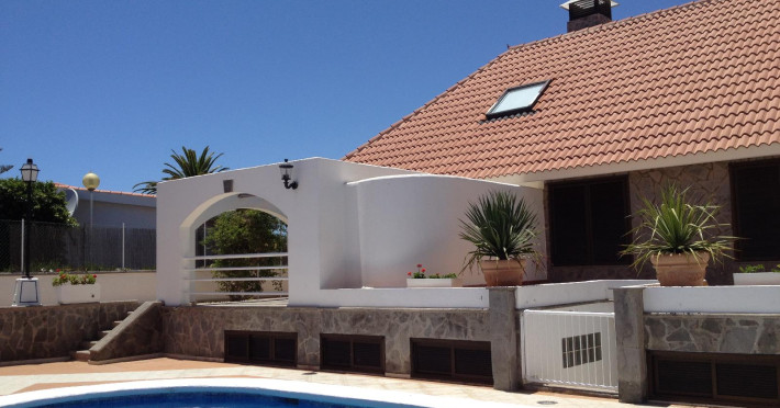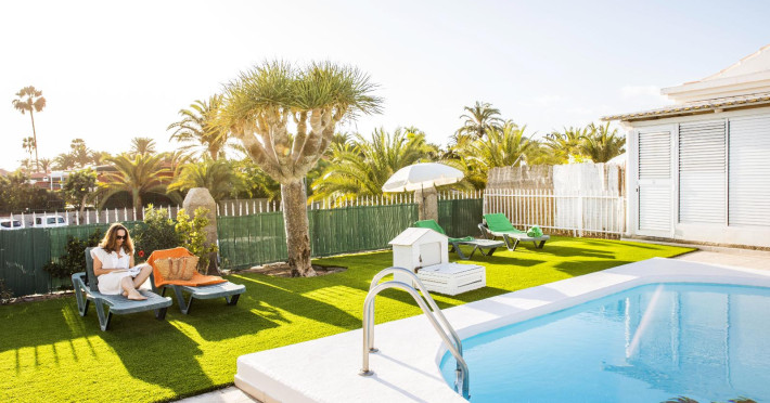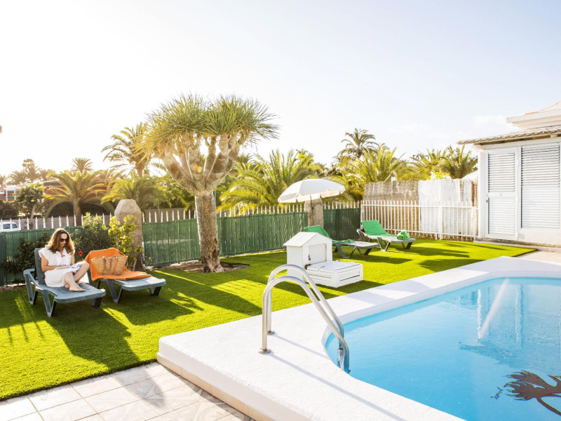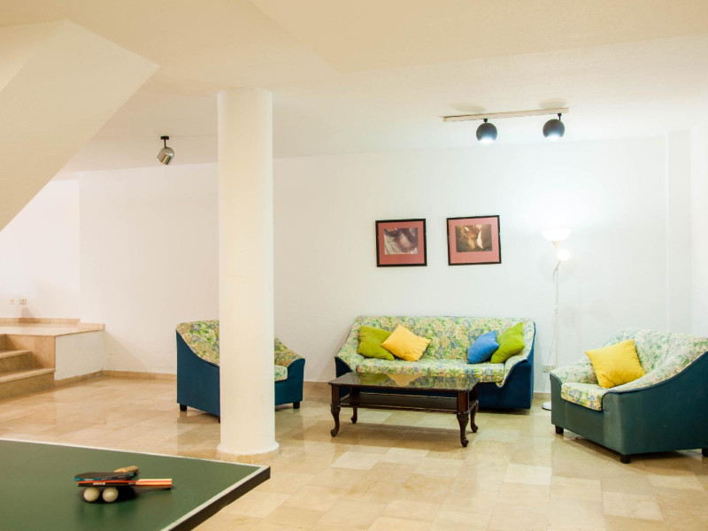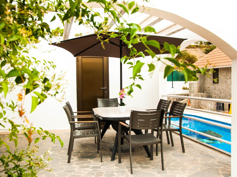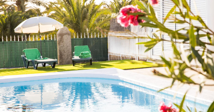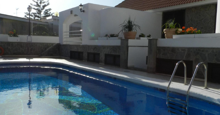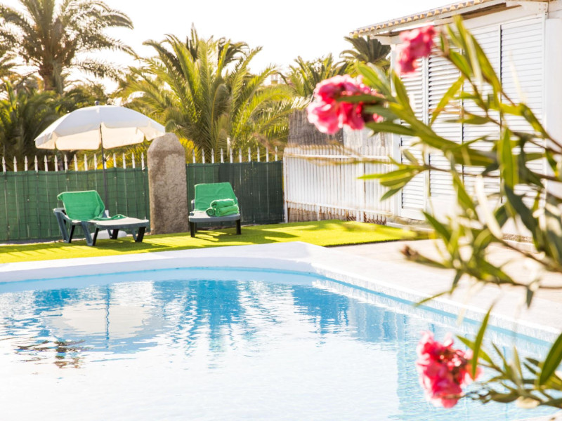 This small complex of four Canarian-style villas offers a tranquil escape. Each three-story villa accommodates up to six guests, perfect for families or friends seeking relaxation. Villas feature spacious private sun terraces, three bedrooms with two single beds each, and two fully equipped bathrooms with hairdryers. A fully equipped kitchen and a living/dining area with a sofa, satellite TV, dining table, and DVD player provide all the comforts of home. The ground floor offers a ping pong table, reading area, and games corner. Enjoy Gran Canaria's weather on the furnished terrace with stunning golf course views. Guests share a pool and sun terrace with sunbeds and parasols. Amenities include Wi-Fi, a safe, coffee maker, toaster, kettle, iron, ironing board, fan, and washing machine. Free parking is available, and baby cots, tubs, and highchairs are available upon request. Overlooking Maspalomas Golf Course, the complex is a five-minute drive from the Maspalomas Dunes and Meloneras Centre, with its shops, bars, and restaurants. A minimarket is conveniently located 50 meters away. A nearby tennis center and gym offer activities like tennis, squash, aerobics, and a sauna.CheckIn: from 15:00 to 23:00. CheckOut: from 07:00 to 12:00