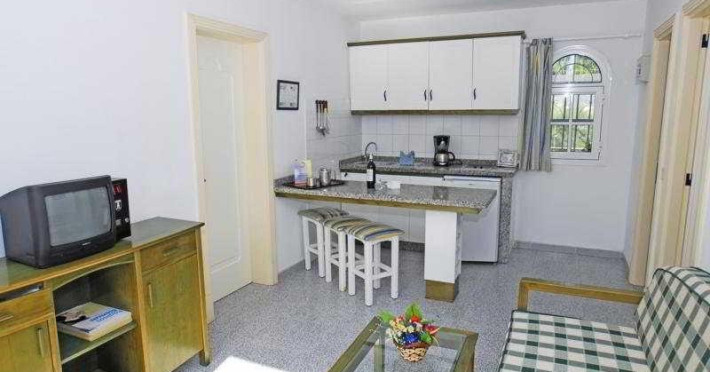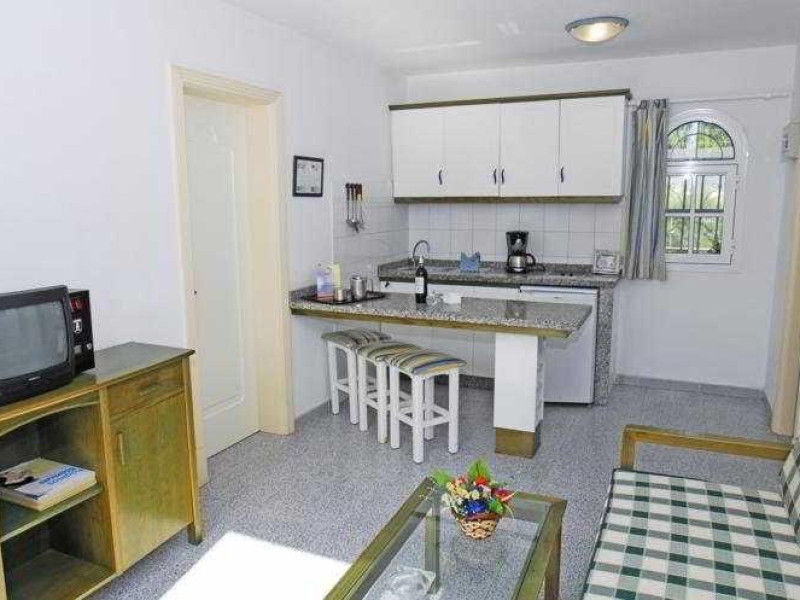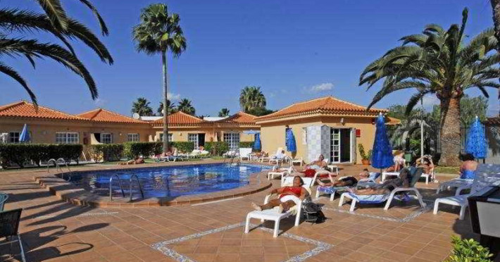 This bungalow complex enjoys a strategic location in Maspalomas. The establishment is only 5 minutes from the beach and around 500 metres from the aqua park. The centre of the Playa del Inglés resort is roughly 2.5 km away and features a number of tourist attractions. This complex comprises a total of 32 bungalows and is an ideal location for meeting in a quiet and pleasant atmosphere. Facilities available at this establishment include a hotel safe, a children's playground, a café, a bar, a restaurant and room and laundry services. Guests arriving by car can leave their vehicles in the nearby car park, whilst those wishing to explore the local surroundings can hire bikes from reception. The one-bedroom bungalows feature a bedroom with a wardrobe and dressing table; a living room with a sofa bed, an armchair and a dining table; and a fully equipped kitchen with a fridge/freezer, a dual-hob electric cooker and tea and coffee making facilities. The en suite bathrooms feature a bath, and in-room amenities include a direct dial telephone (fees apply), satellite/cable TV and a safe. The bungalows also come with a pleasant individual garden with a terrace, complete with a table and chairs. Guests can enjoy a walk through the broad garden areas within the complex, or they can take a dip in one of the two outdoor freshwater swimming pools. The first is large, heated and suitable for adults, whilst the other pool is designated as a children's swimming area. Convenient refreshments can be found at the poolside snack bar, and guests can relax with the sun loungers and parasols which have been laid out on the sun terrace. Facilities are available for pool/snooker, and the nearby beach features sun loungers and parasols for hire.This bungalow complex enjoys a strategic location in Maspalomas. The establishment is only 5 minutes from the beach and around 500 metres from the aqua park. The centre of the Playa del Inglés resort is roughly 2.5 km away and features a number of tourist attractions.