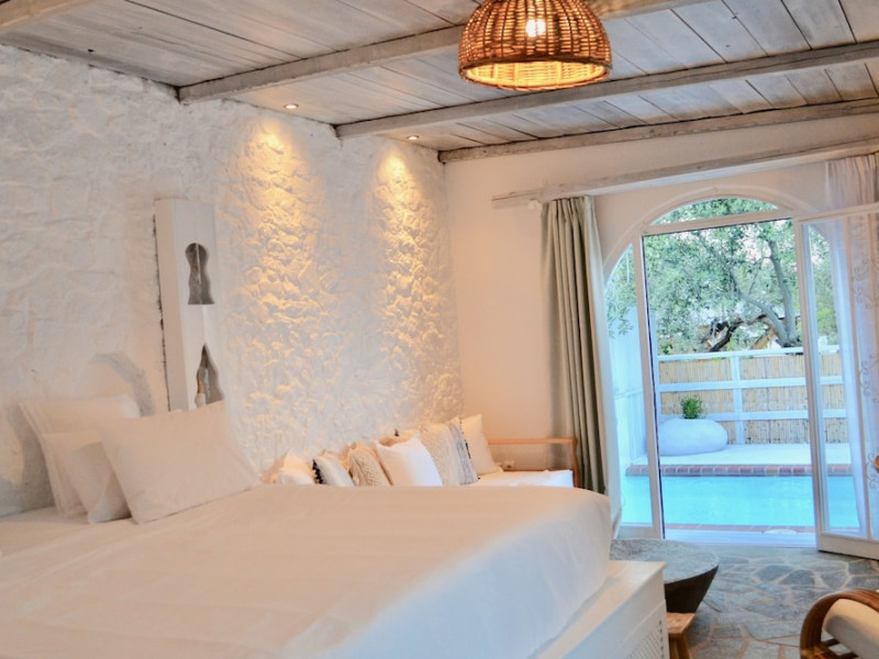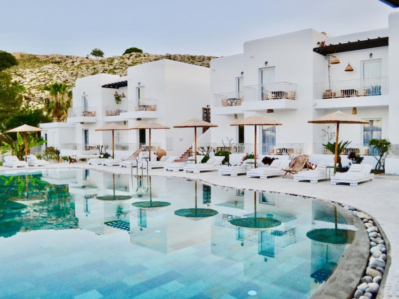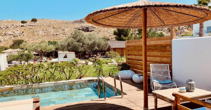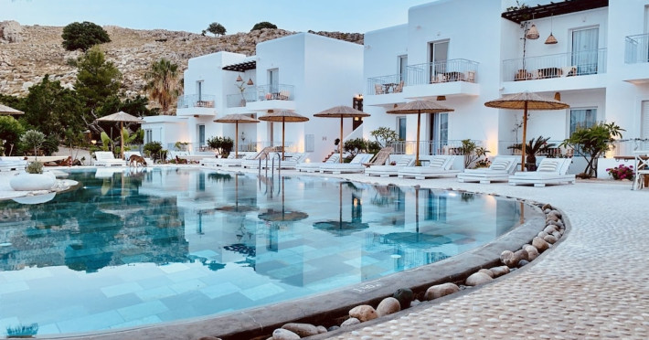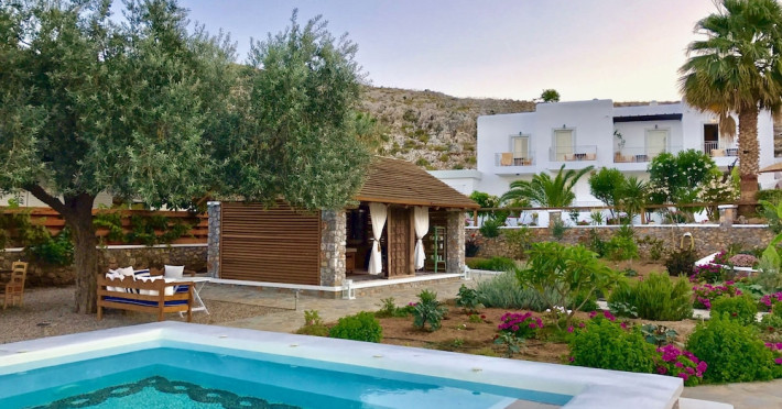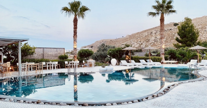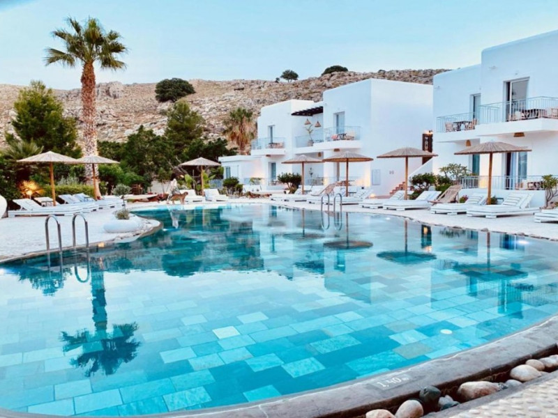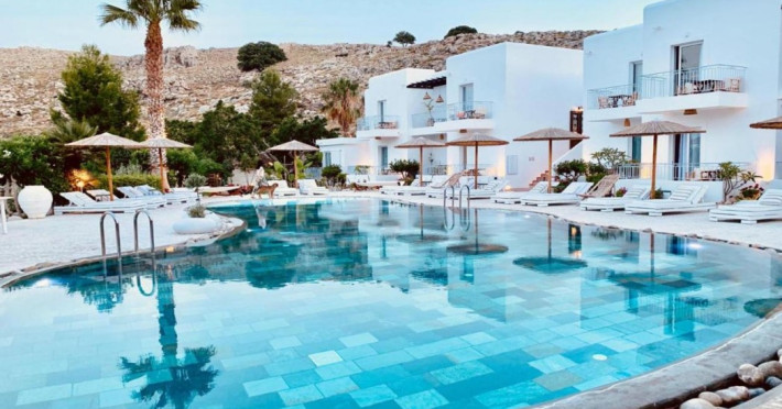 Caesars Gardens Hotel & Spa is an adults-only retreat offering a tranquil and relaxing stay. The hotel features low-rise whitewashed buildings surrounded by Mediterranean gardens. The interiors showcase an Aegean aesthetic with locally crafted furnishings in elegantly rustic rooms. All 23 air-conditioned rooms include minibars, Smart TVs, complimentary Wi-Fi, cable programming, phones, safes, desks, and bathrooms with complimentary toiletries and hair dryers. Some rooms also have Illy Espresso Machines and tea-making facilities. Guests can enjoy Mediterranean cuisine at Tárate Restaurant, a bar/lounge, and 24-hour room service. A complimentary buffet breakfast is served daily. The Magnolia Spa offers massages, body treatments, and facials. Amenities include a seasonal outdoor pool, hot tub, concierge services, complimentary newspapers, dry cleaning/laundry services, and a 24-hour front desk. An airport shuttle is available for a surcharge, and free self-parking is provided. The hotel is located approximately 1km from Lindos village and 1.5km from the beach and St. Pauls Bay, and 50km from Rhodes Town and the airport. The Caesars Gardens Hotel And Spa - Adults Only is a hotel.