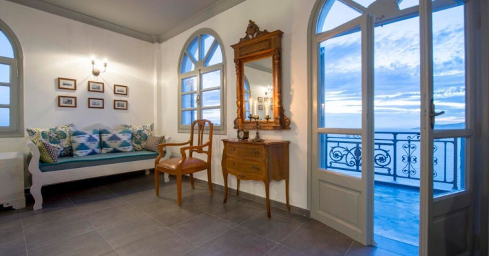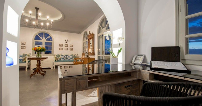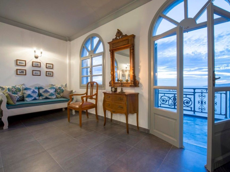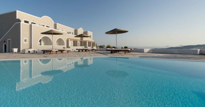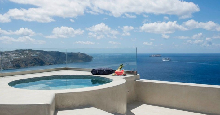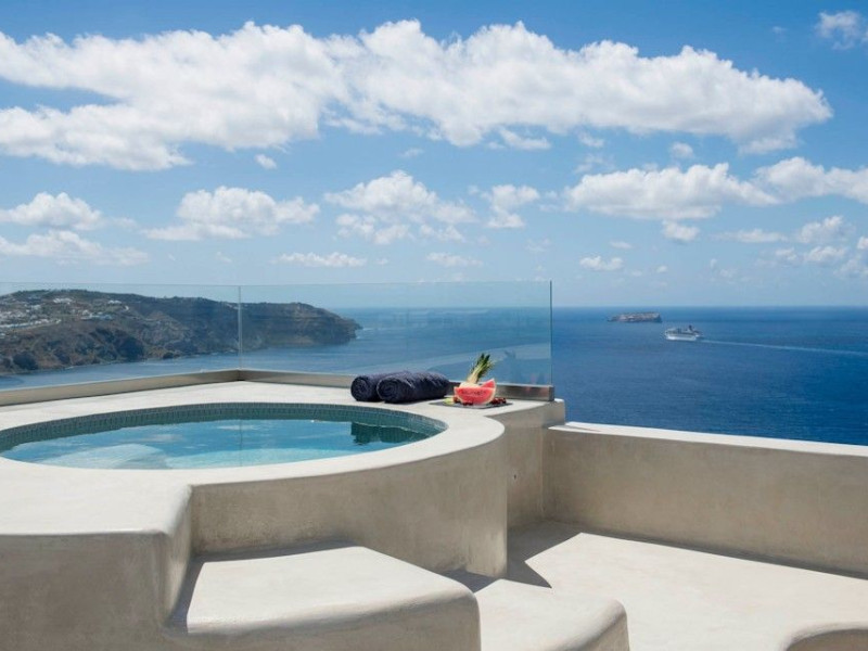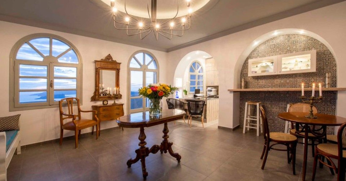 CALDERA'S DOLPHIN SUITES is located on the cliff side of Megalochori village, offering a panoramic view of the Santorini caldera, volcano and the sunset, next to the Boutari winery. Ideally located only 6 km to Fira town and to Vlychade beach, as well as 3 km to Akrotiri archeological site.