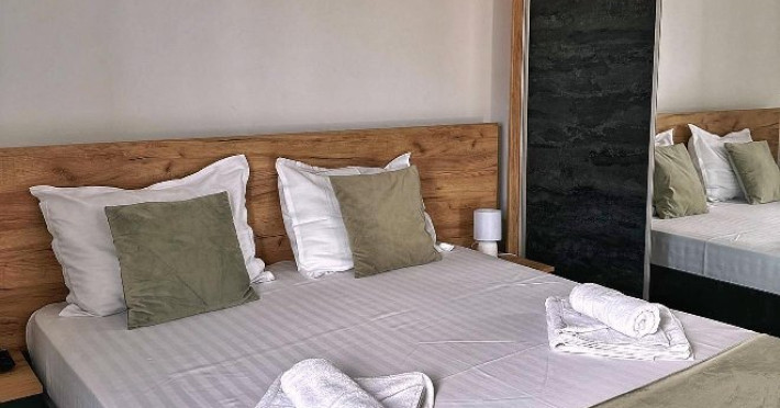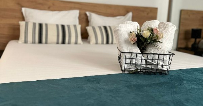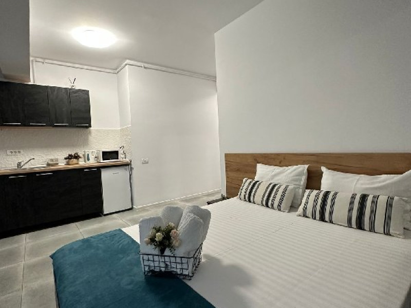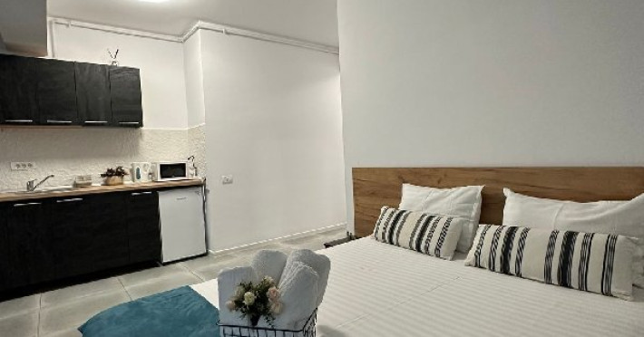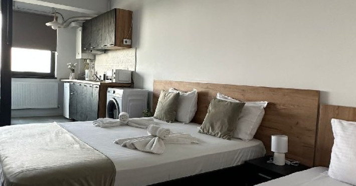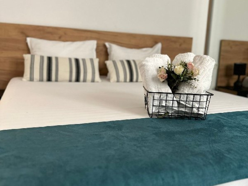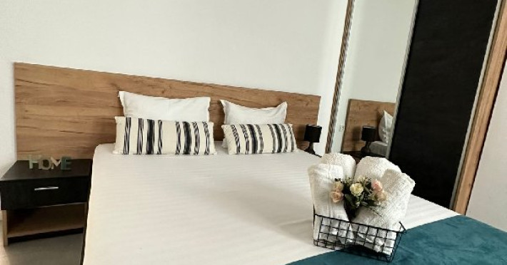 Tipuri camere: - Apartament 1 dormitor: apartamentul este format dintr-un dormitor cu pat matrimonial si un living cu canapea extensibila. Capacitate maxima 3 adulti + 2 copii (1 apartament) - Studio triplu standard: studioul contine un pat matrimonial + 1 pat single. Capacitate maxima 3 adulti + 1copil sub 7ani (3studiouri) - Studio king cu canapea: studioul contine un pat matrimonial + 1 canapea extensibila. Capacitate maxima 3 adulti + 2 copii sub 7 ani (4 studiouri)