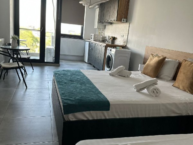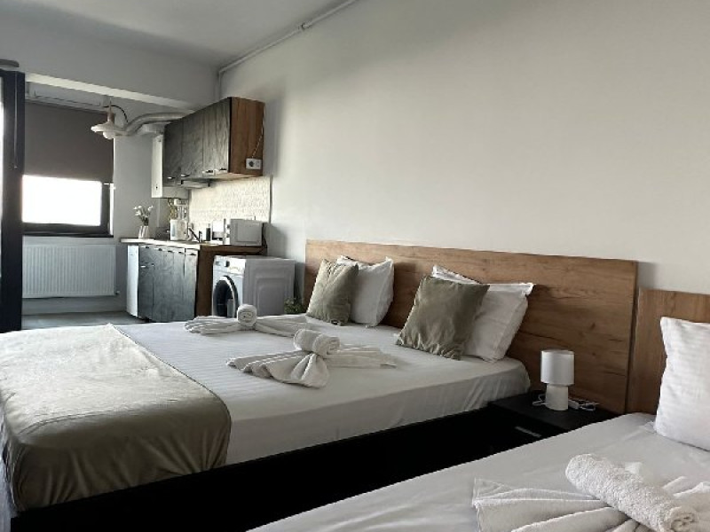Dotari camere: balcon, grup sanitar propriu, incalzire centrala, aer conditionat, internet wireless, apa calda permanent, chicinete utilate complet, uscator par, tv cablu