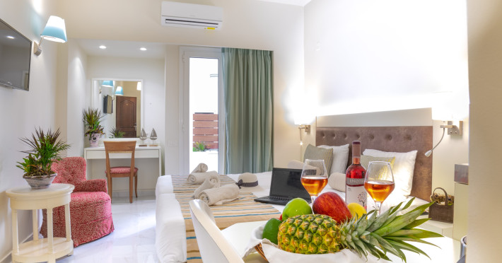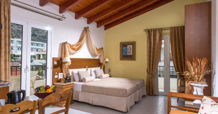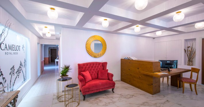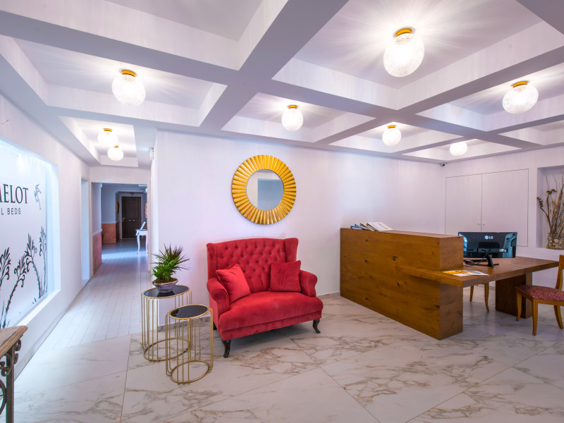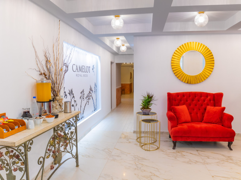 Nestled in the heart of Malia, Crete, Camelot Royal Beds apartments are a remarkable destination that epitomizes the essence of Greek hospitality combined with modern comforts and a touch of tradition. Surrounded by a meticulously tended garden that houses a sparkling pool, Camelot Royal Beds apartments offer guests an oasis of relaxation just steps away from the vibrant heart of the town. Situated within a two-minute walk from Malia’s central square, the hotel quickly established itself as a sought-after destination for those looking to experience the best of Crete.
