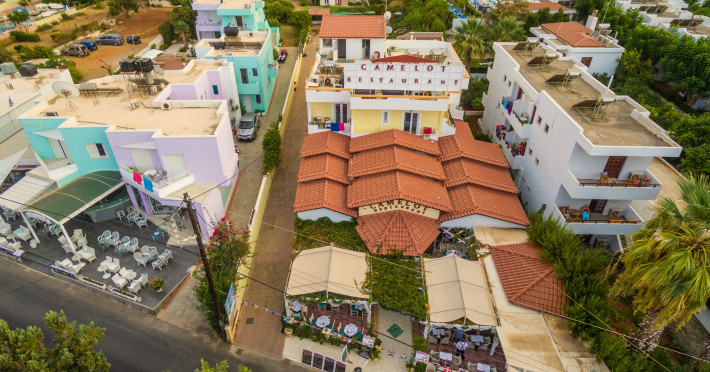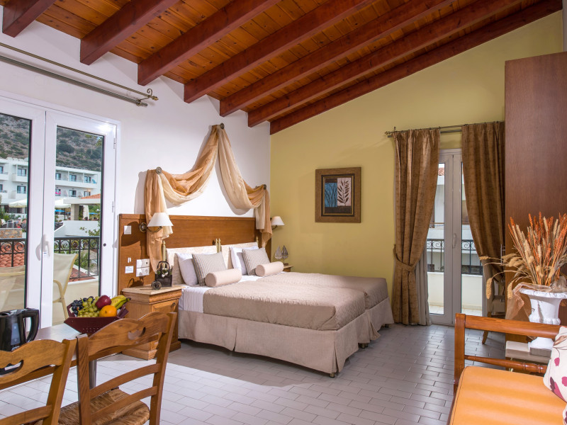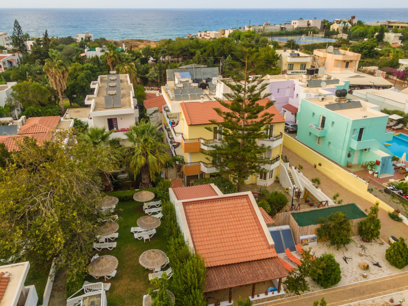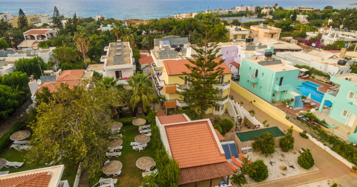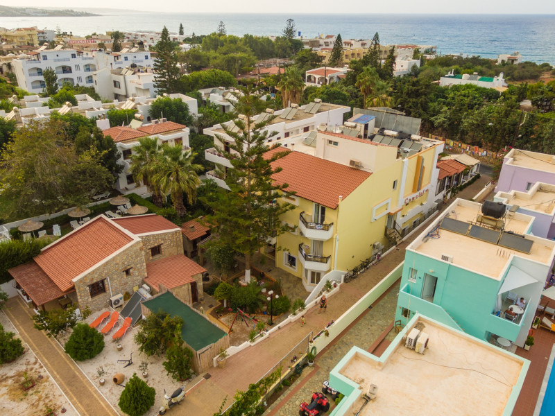 With a dedicated children’s pool, the hotel caters to families, ensuring a fun and safe environment for younger guests. Its prime location means that shops, bars, taverns, and the beautiful Malia Beach are only a short walk away. The traditional village of Krasi, known for its natural beauty, is a mere 15-minute drive.