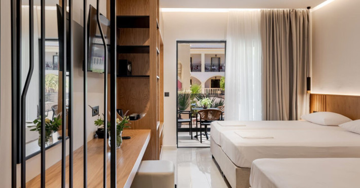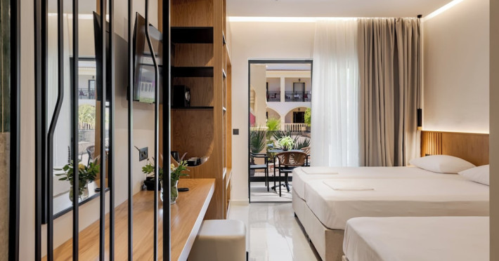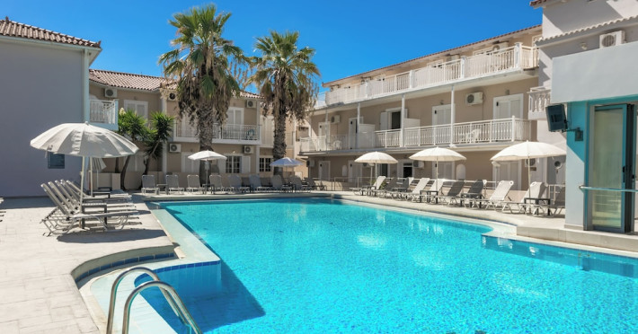 Facilities and services include 24-hour reception, lobby, business center, pool, parking, doctor on call (additional charge), gym (additional charge), bar, laundry service (additional charge), dry cleaning (additional charge), and restaurant.Room features include air conditioning (additional charge), internet access (additional charge), telephone (additional charge), safe (additional charge), TV, mini fridge, balcony, room service (additional charge), hairdryer, and safe (additional charge).The operation of certain services & facilities is subject to weather conditions.Address: Laganas 290 92, Zakynthos