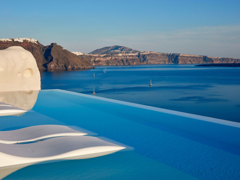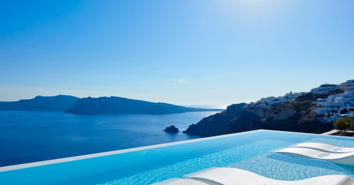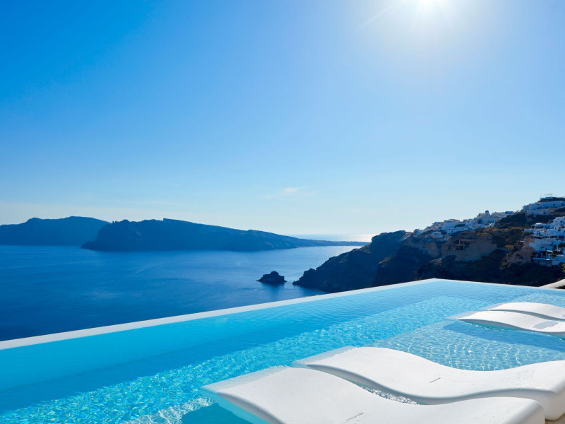 Carved into the Cliffside, Canaves Oia Suites were traditional wineries of the 17th century that have been modified and transformed into elegantly designed luxury suites, emitting the brightness of Santorian architecture in a sophisticated ambience. All suites ooze the elegance of minimalism, while contemporary comforts, vast spaces and private plunge pools with stunning views to the Aegean Sea reach the ultimate levels of luxury.Access to all suites is comfortable and convenient within least steps and elevator access to all levels of the property. Blending spectacular vistas of the charming Caldera with over the top accommodation and impeccable service, those luxury suites in Oia, Santorini will charm even the most eclectic guests.