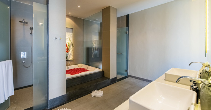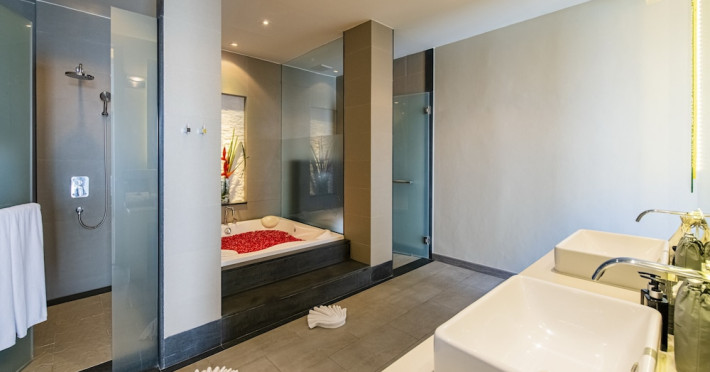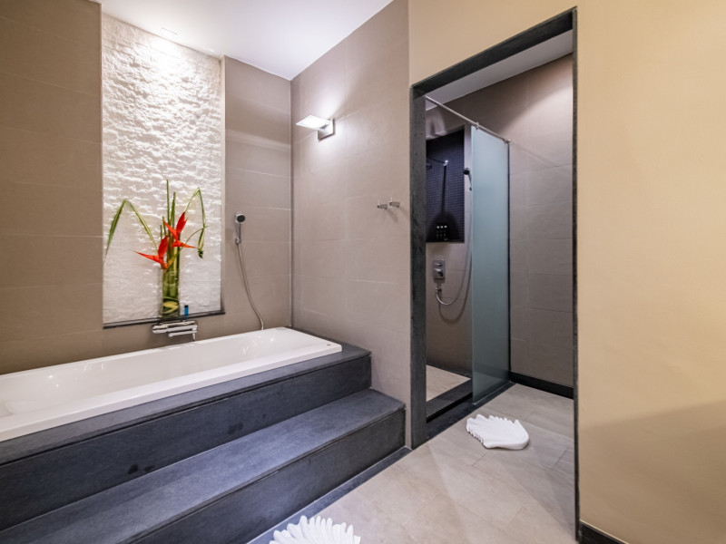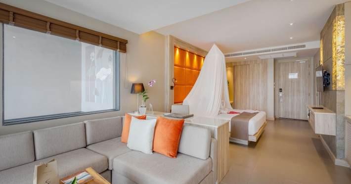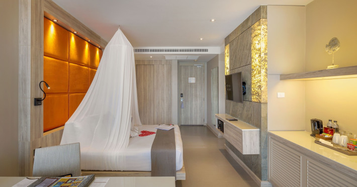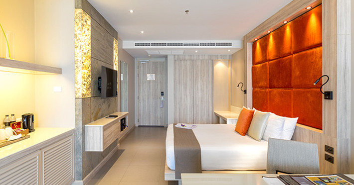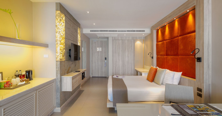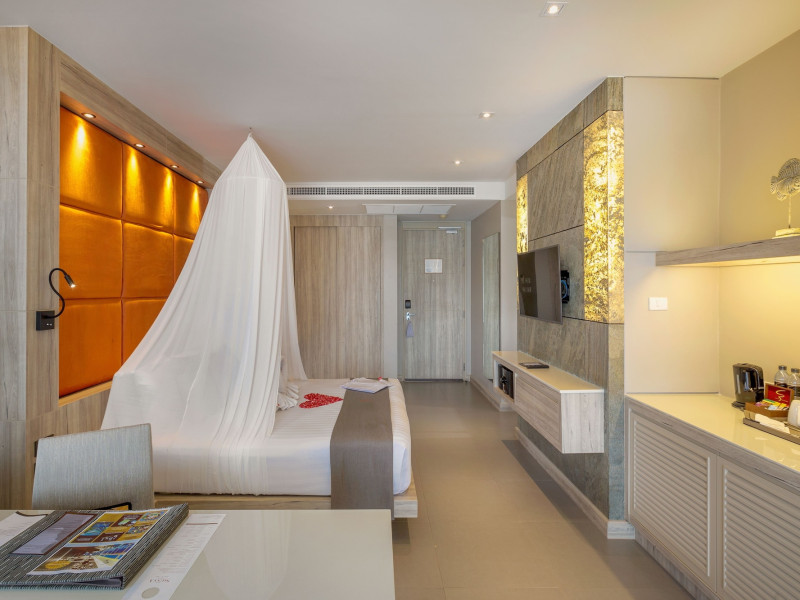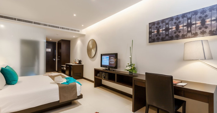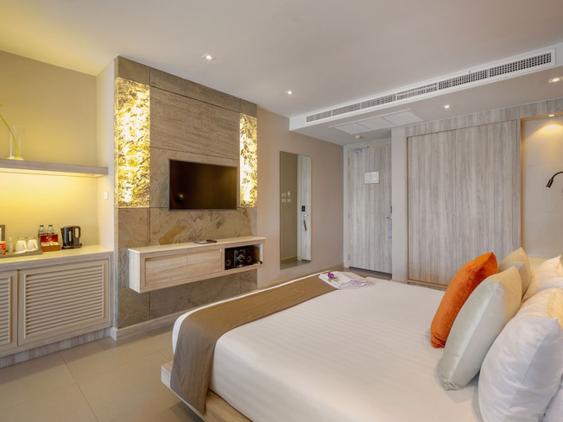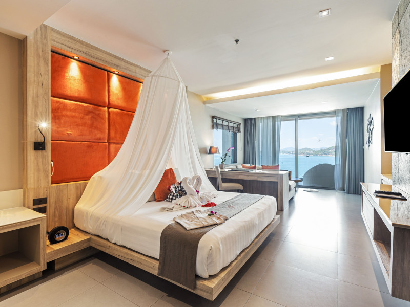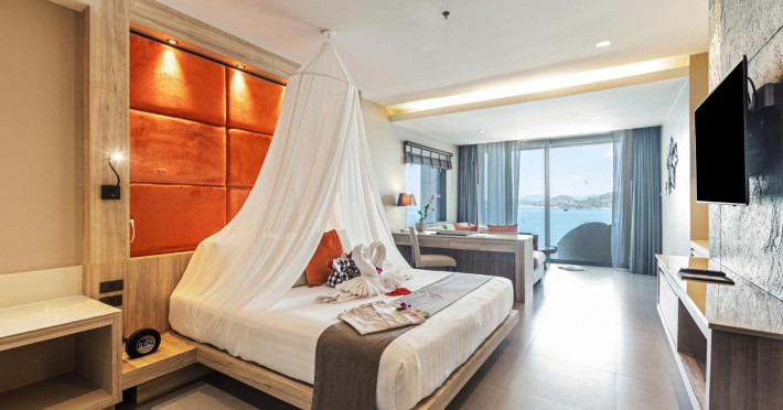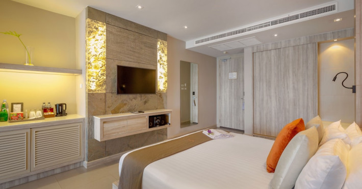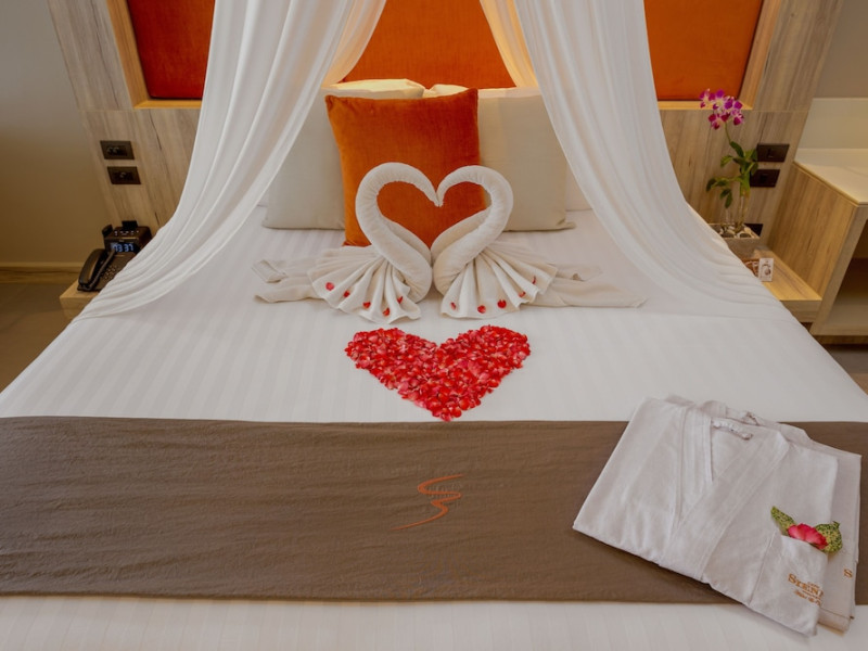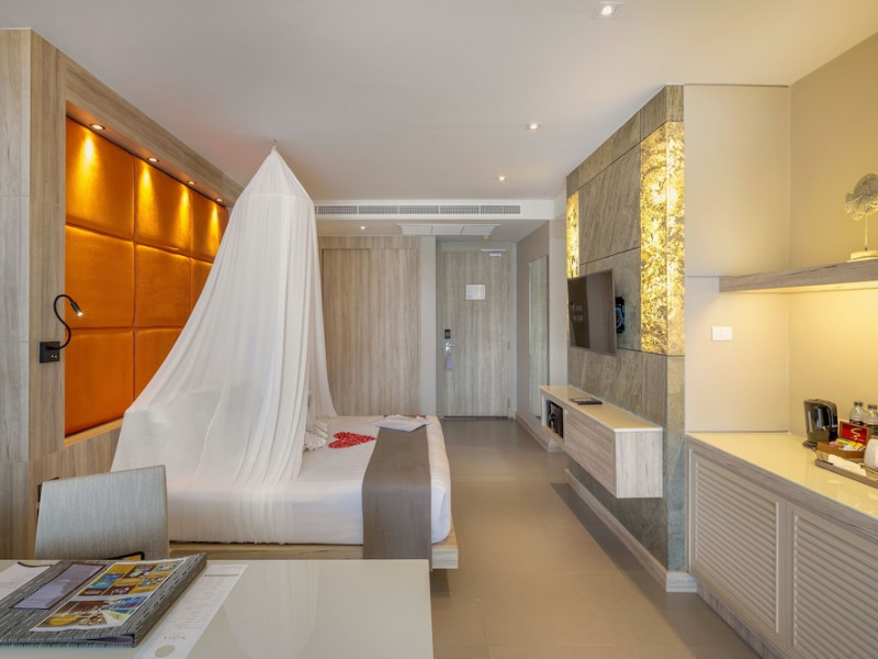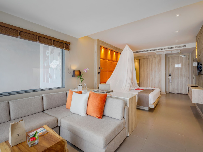 Cape Sienna Gourmet Hotel & Villas - SHA Extra Plus is a chic and modern resort located on Kamala Beach, Phuket, offering stunning sea views. The resort features 146 air-conditioned rooms with private balconies, cable programming, DVD players, and complimentary Wi-Fi. Guests can enjoy international cuisine at one of the 2 restaurants, relax at the bar/lounge or poolside bar, and take advantage of room service. The hotel offers 2 outdoor swimming pools, a fitness center, a full-service spa with massages, body treatments, and facials, and a steam room. Additional amenities include complimentary Wi-Fi, concierge services, a tour desk, gift shops/newsstands, a computer station, complimentary newspapers in the lobby, and dry cleaning/laundry services. Airport shuttle and car rental services are available for a surcharge, and free self-parking is provided. The hotel also offers a free shuttle service to Kamala Beach. The Cape Sienna Phuket Gourmet Hotel & Villas is a Honeymoon, Leisure, Resort, Tourist, Villa Resort hotel. The nightlife/restaurants are easily accessible by taxi or bus from the hotel.