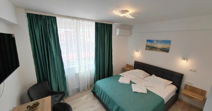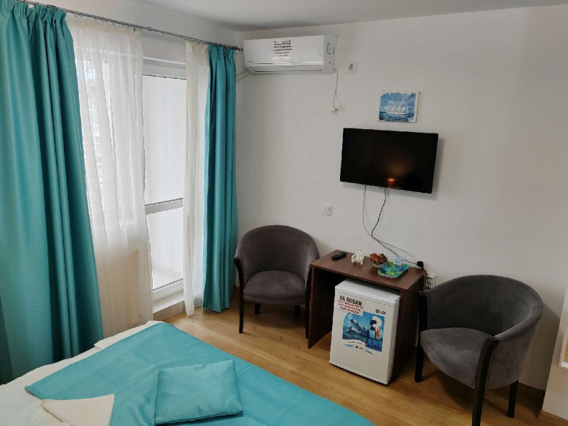 Camerele sunt dotate la un confort de 3*, cu paturi duble, matrimoniale, Tv, internet, grup sanitar cu dus-cabine, aer conditionat. Locatia noastra a primit in 2021 mai multe imbunatatiri si am adaugat servicii care sa vina in intampinarea turistilor cazati in sezonul estival (toate camerele au in dotare frigider, baile cu dozator pentru gel de dus si sapun lichid). Fumatul nu este permis in camere.