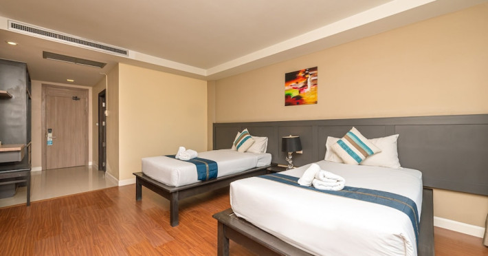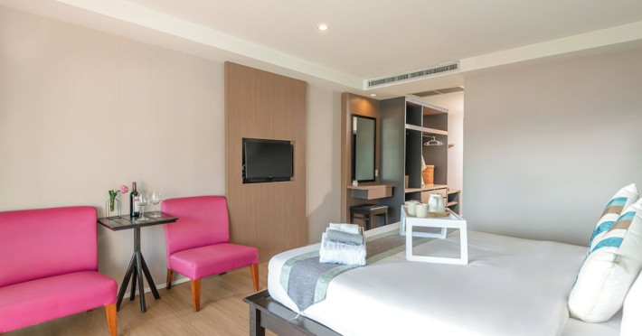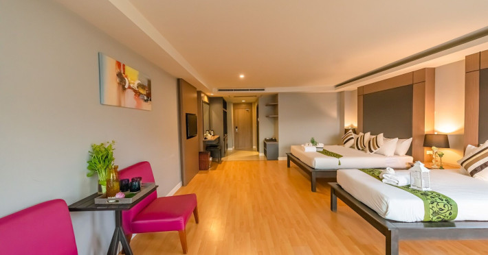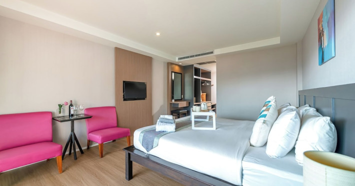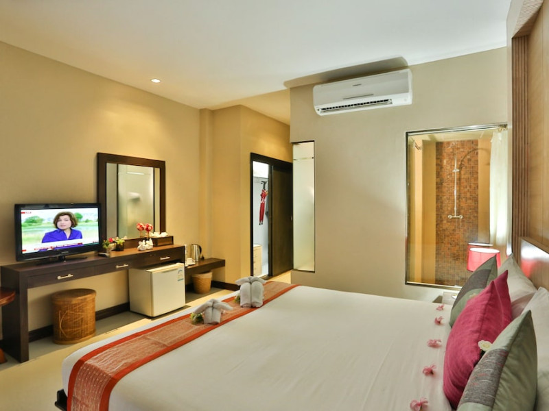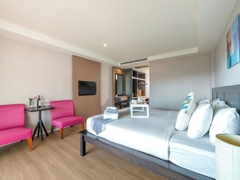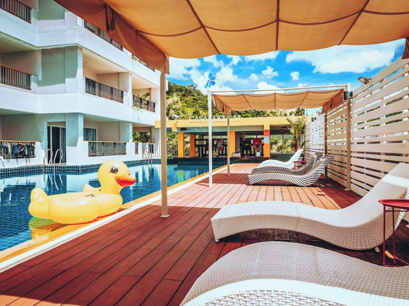 Casa Del M Phuket is a family-friendly spa resort located on a tranquil hillside in Patong, near the beach. It offers a free shuttle service to Patong Beach and Jungceylon Shopping Mall. The resort features an outdoor swimming pool, a fitness center, a spa offering massages, complimentary Wi-Fi, a business center, a tour desk, and a 24-hour front desk. Guests can enjoy meals at the rooftop Ristorante Me (Italian cuisine) and M Café (International and Thai dishes), as well as drinks at the swim-up bar. English breakfasts are available for a fee. The air-conditioned rooms feature cable TV, a safe, a minibar, coffee/tea making facilities, and an en-suite bathroom with a shower and hair dryer. Some rooms have a balcony or terrace. Laundry, dry cleaning, and car hire services are available. Free self-parking is provided. Smoking is prohibited in the hotel; designated smoking areas are available. Phuket International Airport is approximately an hour's drive away. Nearby attractions include Nurul Islam Mosque, Patong Beach, and Bangla Road. The Casa Del M Resort is a Boutique, Child Friendly, Honeymoon, Leisure, Tourist hotel. The nightlife/restaurants are within walking distance from the hotel.