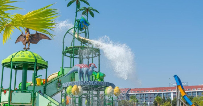 Hotelul pune la dispozitia oaspetilor: restaurant bufet, 3 restaurante a la carte, snack-bar, patiserie, mai multe baruri inclusiv la piscina si la plaja, 3 piscine exterioare la hotel si 2 piscine exterioare in zona plajei, aquapark, 2 piscine interioare, plaja privata cu nisip si pietricele cu acces prin pasaj subteran, umbrele, sezlonguri si prosoape gratuite pe plaja si la piscina, centru Spa, sala fitness, spectacole, muzica live, volei pe plaja, aerobic, yoga, Wi-Fi gratuit in zonele publice si in camere, aer conditionat.