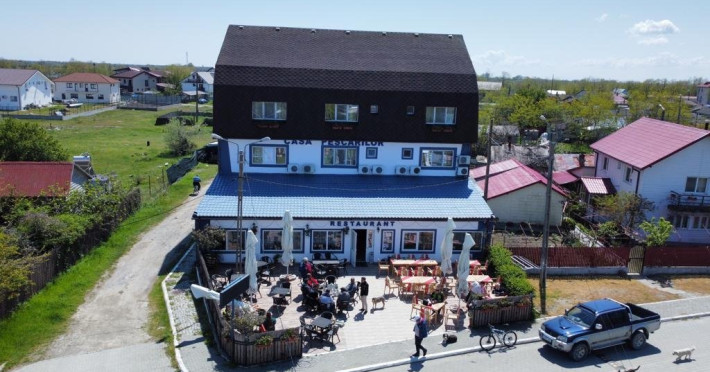 la CASA PESCARILOR din Sulina! Orasul Sulina musteste de istorie si frumos. Oamenii de aici stiu sa povesteasca. Fiecare casa are istoria ei, mai mult sau mai putin romantata. Dunarea si Marea Neagra se intalnesc aici si raman impreuna pentru totdeauna, asa cum si povestile locului raman sa fie spuse tuturor celor gata sa le asculte. Pentru aceasta frumoasa experienta trebuie sa le multumim gazdelor, dna si dl Scarlat! Niste oameni dedicati care reusesc sa ne ofere Delta Dunarii cum nu a mai facut-o nimeni pana acum. De altfel, munca si daruirea lor se regaseste in numarul tot mai mare de turisti care aleg sa-si petreaca vacantele in Sulina. Toate camerele sunt spatioase si au aceleasi dotari, difera vederea si faptul ca unele au balcon si unele nu. Cele cu balcon sunt preferate de fumatori, cele cu vedere la lac (la bazinul mic din Sulina de fapt!) sunt preferate de cei care iubesc sa contemple natura, iar cele economy sunt preferate de cei care considera ca nu stau in camera decat ca sa doarma si care sunt niste persoane practice! Aceasta proprietate este la 10 minute pe jos fata de plaja. Pensiunea Casa Pescarilor fosta Casa Sibiana pune la dispozitie un restaurant, bar, lounge comun si o gradina in Sulina. Fiecare unitate de cazare de la acest hotel de 3 stele are vedere la lac, iar oaspetii beneficiaza de acces la terasa si la o zona de plaja privata. La cazare, oaspetii beneficiaza de receptie cu program nonstop si room service.
