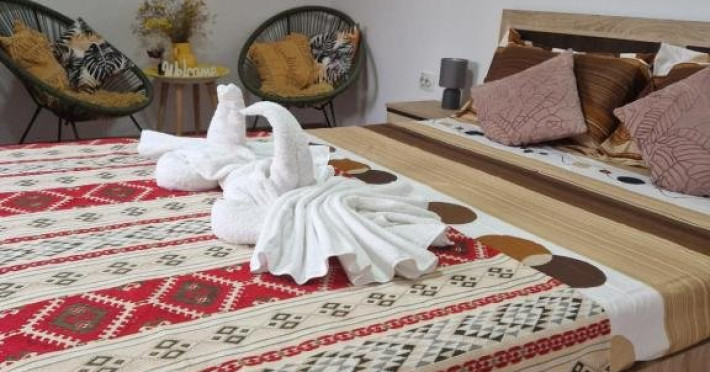 Daca vrei sa descoperi farmecul Deltei Dunarii, Casa de vacanta Roko este alegerea ideala pentru tine si familia ta! Situata chiar in centrul localitatii Sfantu Gheorghe, la cativa pasi de primarie, port, plaja, restaurante si supermarket, proprietatea noastra iti ofera acces rapid la toate atractiile zonei. Oferim 5 camere confortabile, fiecare cu baie proprie, TV si aer conditionat, pentru un sejur relaxant. In curte te poti bucura de doua foisoare perfecte pentru relaxare, o sala de mese spatioasa si o vitrina frigorifica pentru bauturi reci. Transforma-ti vacanta intr-o experienta de neuitat: organizam plimbari cu barca in Delta Dunarii si asiguram transport la plaja sau port, la cerere. La Casa Roko, fiecare camera se inchiriaza doar cu servirea unei mese delicioase, pregatite cu ingrediente locale si dupa gustul tau! Rezerva acum si bucura-te de linistea si frumusetea Deltei Dunarii! Te asteptam cu drag la Casa de vacanta Roko din Sfantu Gheorghe!