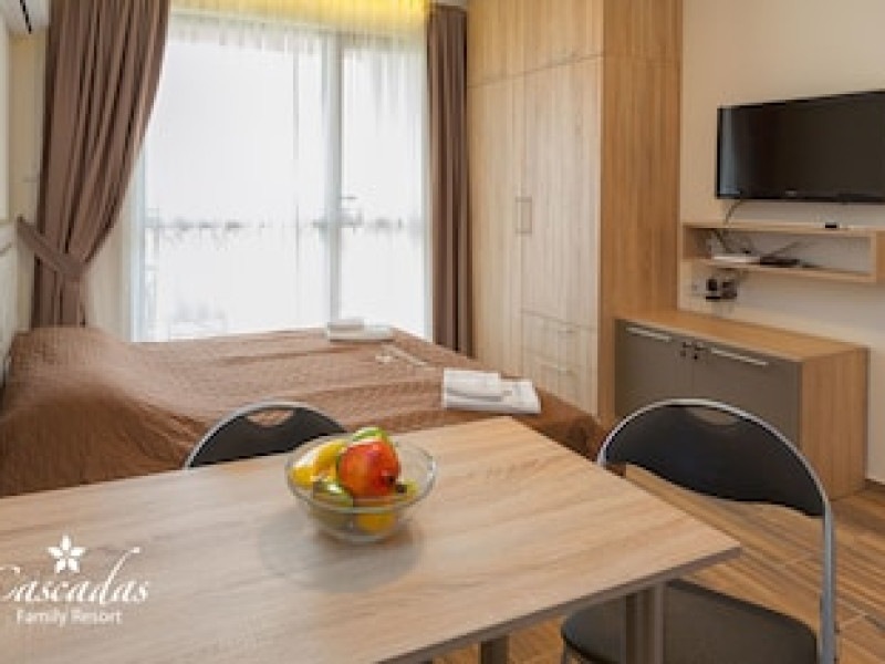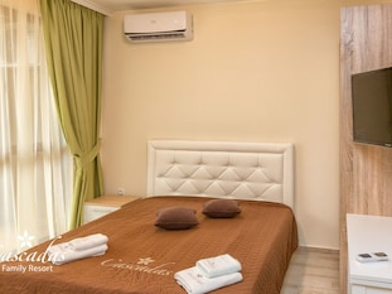Cascadas Family Resort provides flawless service and all the necessary facilities for visitors.RemaiDESCLARGA¬Cascadas Family Resort provides flawless service and all the necessary facilities for visitors.Remain linked during your visit by utilizing the complimentary internet access available.Prior to your check-in date, you can arrange airport transportation services, guaranteeing a seamless and efficient experience for both arrival and departure.Discovering Nessebar becomes even more accessible through the car hire and shuttle amenities provided at the serviced apartment.Parking is accessible, supplied by the serviced apartment for guests who arrive by car. Effortlessly plan your daily activities and travel requirements with concierge service, luggage storage and safety deposit boxes provided by the front desk services. For extended visits or whenever required, the laundromat, dry cleaning service and laundry service ensures your preferred travel garments remain clean and accessible. In limited designated zones, smoking is exclusively permitted.Crafted for coziness, every guestroom provides an array of features, guaranteeing a tranquil night's sleep while maintaining the level of comfort.For a more enjoyable stay, select rooms at serviced apartment are equipped with linen service and air conditioning.At Cascadas Family Resort, a selection of rooms can be found that showcase unique design elements such as a balcony or terrace. For certain chosen rooms, guests can enjoy in-room amusement like television and cable TV as a part of their stay. In select rooms, the serviced apartment offers visitors access to a refrigerator. It is worth noting that certain guest bathrooms feature a hair dryer, toiletries and bathrobes for your convenience. Each morning at Cascadas Family Resort, a scrumptious, homemade breakfast kick-starts the day. During your visit, indulge in a range of delightful culinary choices at serviced apartment to enhance your experience. Experience a fantastic evening effortlessly! Relish an entertaining night without venturing beyond the confines of the bar. Experience unparalleled comfort as groceries can be brought right to your room at Cascadas Family Resort through their distinctive delivery assistance.Do you possess exceptional culinary skills? Prepare your meals personally within the serviced apartment at its BBQ facilities. During your stay at serviced apartment, an array of engaging activities and amenities guarantees a delightful experience. Treat and spoil yourself by stopping at massage, hot tub, salon, steam room, spa and sauna for a memorable experience.Begin your holiday perfectly by taking a plunge into the swimming pool.Eliminate those holiday calories by stopping by serviced apartment and making use of their well-equipped exercise amenities.Extra Bed Policy: Children and extra beds Minimum age of guests is: 0 year(s). Children from 0 to 12 year(s) [inclusive]. If you need an extra bed, it will incur an additional charge.Guests 0 years and older are considered as adults must use an extra bed which will incur an additional charge.Remark: None