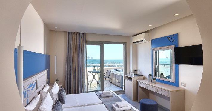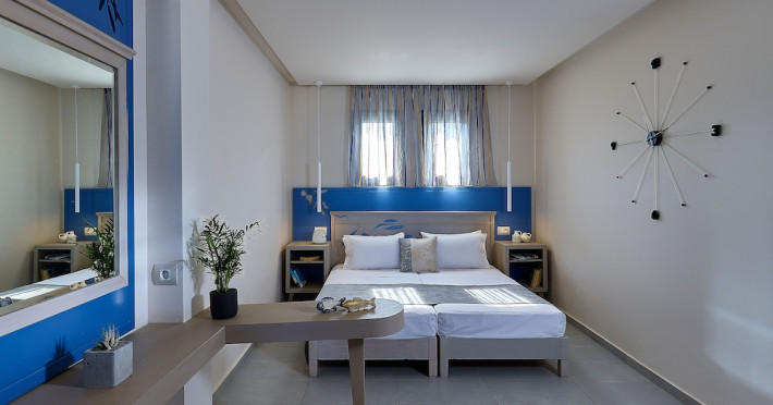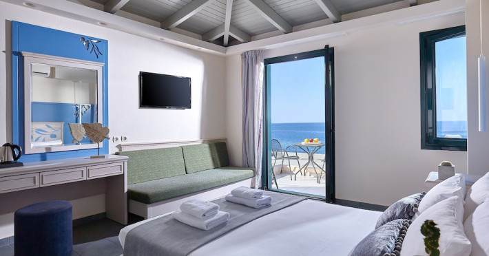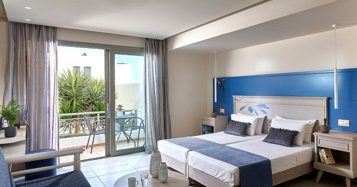 Facilities and services include garden, swimming pools, children's pool, kid's playground, night club, table tennis, sauna, massage, jacuzzi, wireless Internet access, room service (extra charge), parking, gym, laundry service (extra charge) and 24-hour reception.Rooms feature wireless Internet access, air conditioning, TV, telephone, safe, coffee/tea maker, mini fridge (extra charge), hairdryer, bathtub and bathroom.Family deluxe rooms also feature living room separated.Please note that some of the above facilities may be closed due to weather / seasonal conditions.Address: 72400 I.Papatheodorou, Sissi, Crete, Greece.