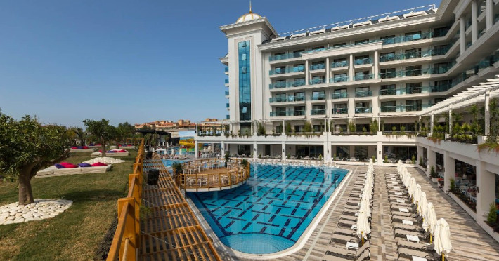 Facilitati hotel: Oaspetii pot beneficia de restaurant principal, restaurante A la Carte, baruri, piscine exterioare, piscina interiara, tobogane, sezlonguri si umbrele, sala fitness, centru spa, programe de animatie si divertisment.