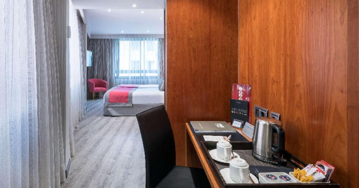 69 suites and 117 double rooms are located on 8 storeys and can be reached by lift. The reception desk is open round the clock. Amenities available at the hotel include a baggage storage service, safe, cash machine and drinks machine. Wireless internet access is provided in public areas. The tour desk offers assistance with booking excursions. The hotel has a range of facilities for guests with disabilities. The hotel has wheelchair-accessible facilities. There are a number of shops as well. Additional amenities include a TV room and a playroom. Guests arriving by car can park their vehicles in the garage or in the car park. Further services and facilities include a babysitting service, a car hire service, medical assistance, a transfer service, room service, a laundry service, a hairdresser and a coin-operated laundry. Complimentary newspapers are available. A business centre with fax machine and projector is available.