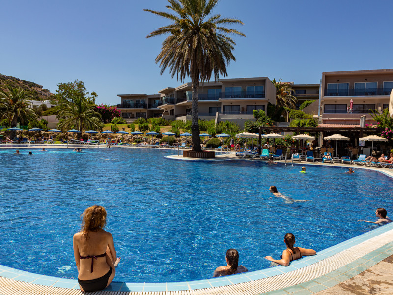 Cathrin Hotel is located in the beautiful and quiet area of Faliraki – Ladiko. Built on a hill and overlooking the Ladiko Bay it offers magnificent views of the Ladiko Bay, and is in walking distance from the famous Anthony Quinn Bay. The Hotel complex consists of 6 one and two floor buildings. All rooms feature either impressive sea views of the Mediterranean Sea and Ladiko Bay, or relaxing garden views. You can relax in the Bar by the pool and enjoy our chill creative cocktails or take part in the various activity and entertainment programs offered. For families and children, the hotel provides a children’s swimming pool and a children’s playground.