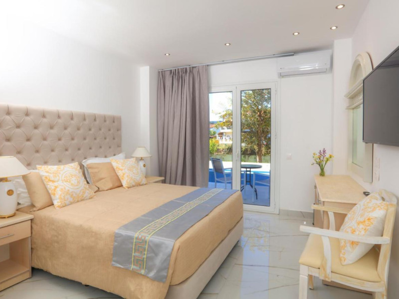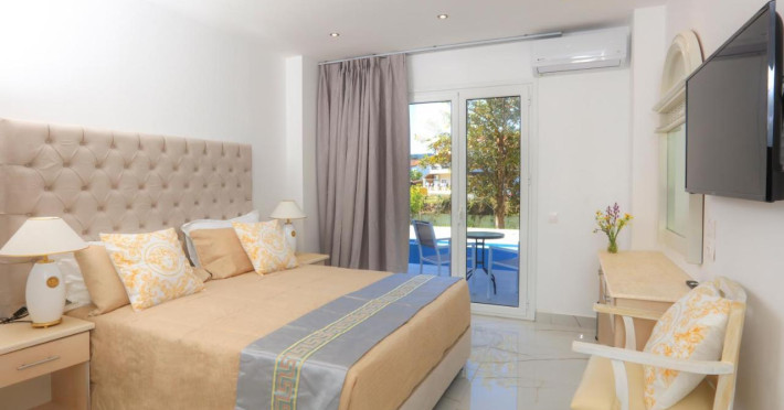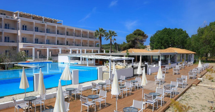 LocationThe hotel is located on the beach and only 150 m from the nearest shops, bars and lively discos. Corfu International Airport is approximately 40 km away.FacilitiesEnglish-speaking staff at the reception desk in the lobby are ready to assist you with check-in and check-out. Amenities available at the hotel include a baggage storage service, a safe and a currency exchange service. Wireless internet access allows guests to stay connected while on holiday. The tour desk offers assistance with booking excursions. A lift and wheelchair-accessible facilities are available. Everyday necessities can be purchased at the supermarket. A garden provides extra space for rest and relaxation in the open air. Additional amenities include a newspaper stand and a TV room. Guests arriving by car can park their vehicles in the garage (no extra charge) or in the car park. Further services and facilities include a babysitting service, medical assistance, a transfer service, room service, a laundry service, a coin-operated laundry and a hotel doctor.RoomsAir conditioning and central heating ensure that rooms maintain comfortable temperatures. Guests can relax and enjoy the sea views from the balcony or private terrace of some rooms. Rooms have a double bed, a queen-size bed, a king-size bed or a sofa bed. Extra beds can be requested. A safe, a minibar and a desk are also available. Additional features include a refrigerator, a mini fridge and a tea/coffee station. A direct dial telephone, a TV and WiFi provide all the essentials for a comfortable holiday. Slippers are included. Bathrooms are equipped with a shower, a bathtub and a whirlpool bath. A hairdryer, bathrobes and a telephone are available for daily use. The hotel has non-smoking rooms.Sports/EntertainmentGuests can work out or just relax in the outdoor and indoor pools. Kids can splash about in a special swimming area just for them. Sun loungers and parasols are available on the sun terrace. A variety of refreshing drinks await guests at the pool bar. For guests who wish to keep active, tennis and crazy golf are available. Water sports enthusiasts can enjoy windsurfing and diving. Guests can enjoy a wide range of indoor sports, including a gym, table tennis, billiards and callisthenics. Various wellness options are available at the hotel, including a spa, a sauna, a beauty salon and massage treatments. Children are well looked after in the kids' club. Copyright GIATA 2004 - 2025. Multilingual, powered by www.giata.com for client no. 124971MealsDining facilities include a dining room, a breakfast room, a café and a bar. A number of specialities await guests in the air-conditioned, non-smoking restaurant. Catering options include bed and breakfast, half board and full board. A continental breakfast buffet and a comprehensive dinner buffet offer culinary delights every day. In addition, special catering options and snacks are available. Alcoholic beverages are available.PaymentThe following credit cards are accepted: VISA and MasterCard.