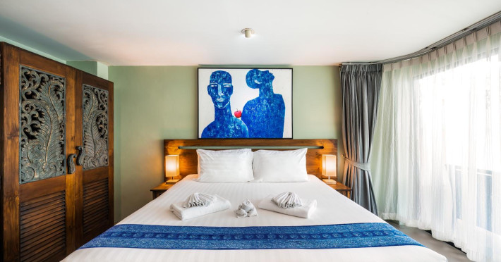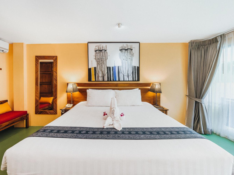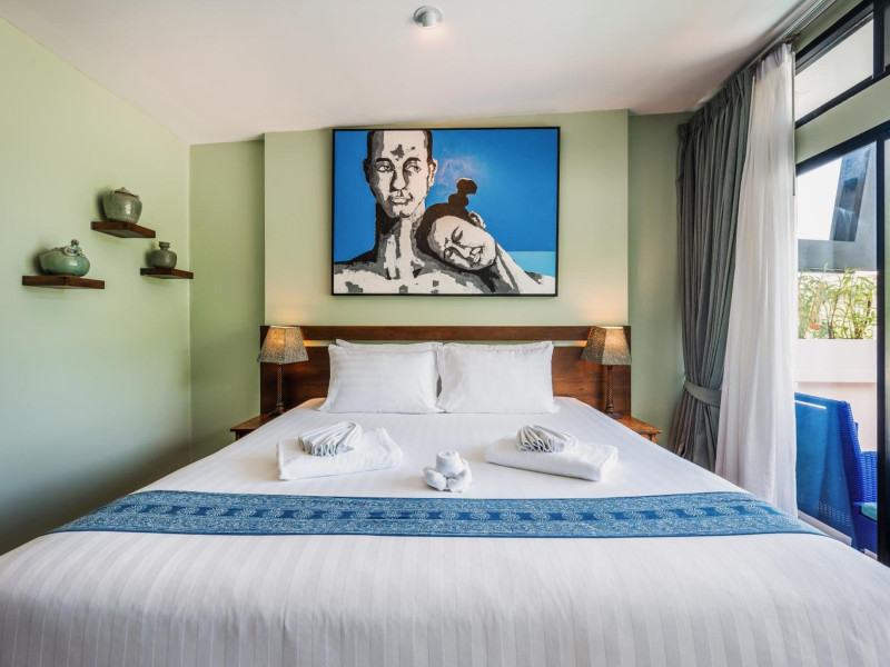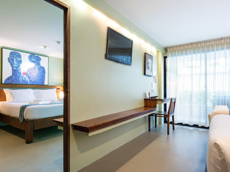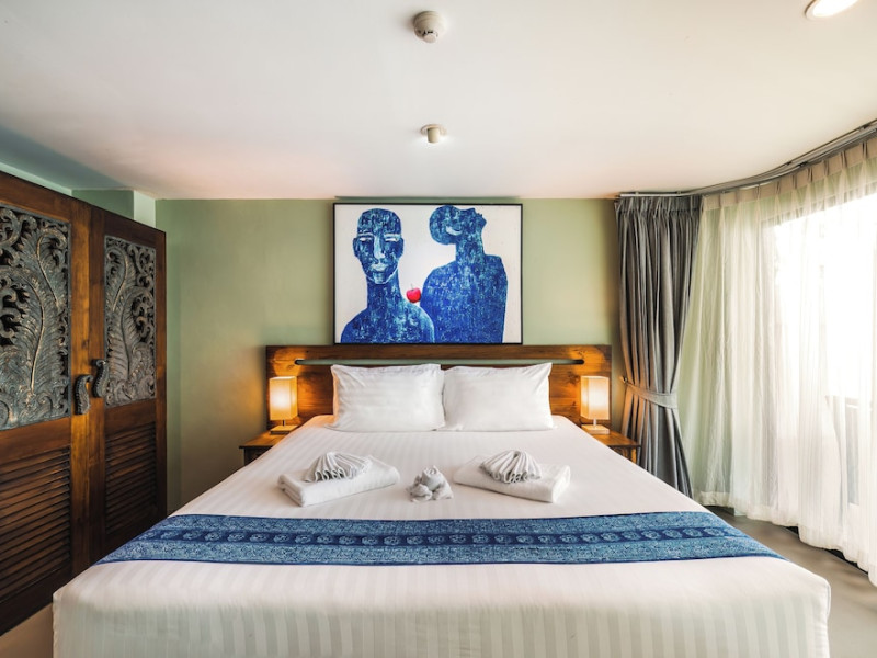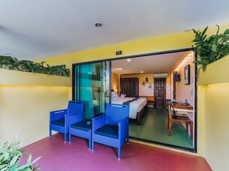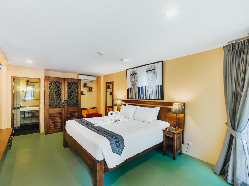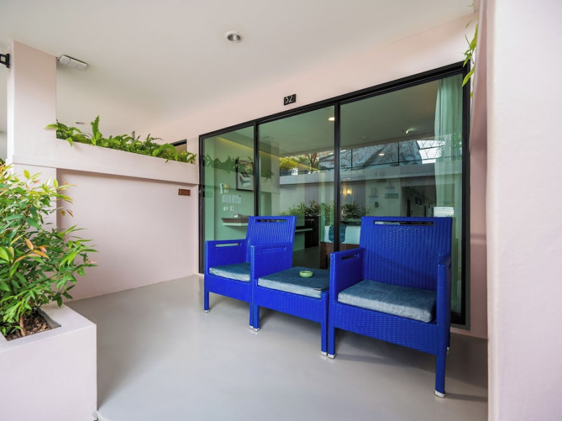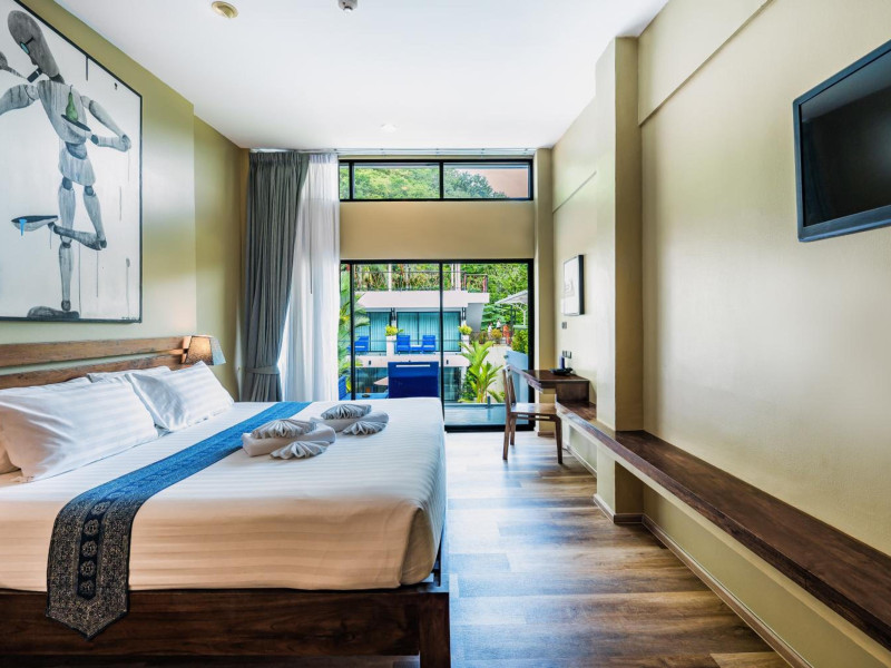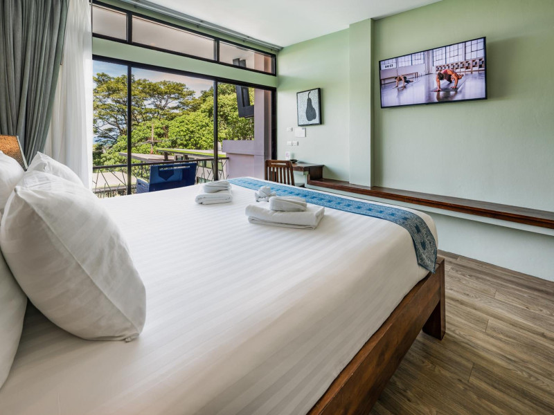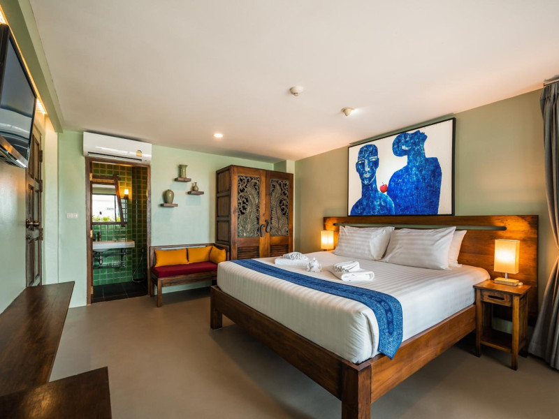 The property features 42 elegantly designed, air-conditioned rooms, many with private balconies or terraces offering ocean or pool views. Each room is adorned with handcrafted Thai teak furniture and unique artwork, and includes a 43-inch Smart TV, complimentary wireless internet, a refrigerator, minibar, and tea/coffee making facilities. Private bathrooms are equipped with showers, complimentary toiletries, and bathrobes. Blackout curtains are also available for guest comfort.