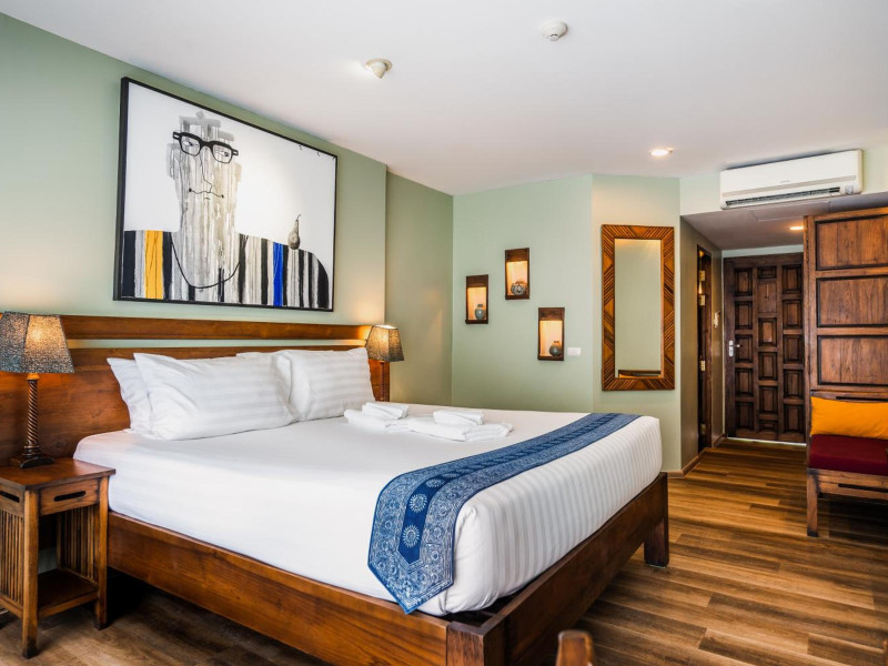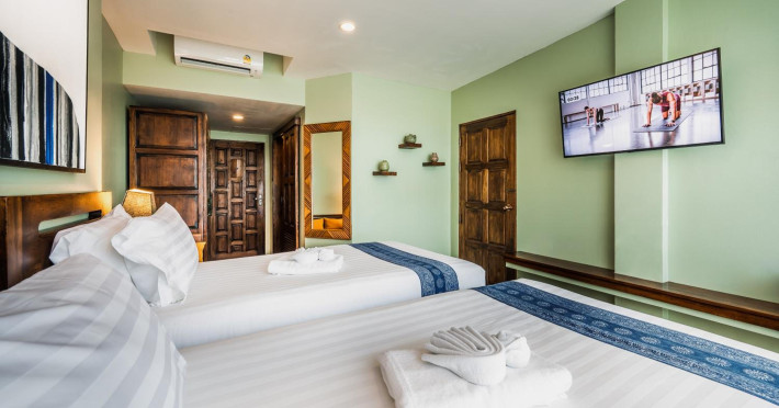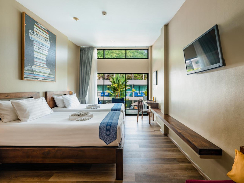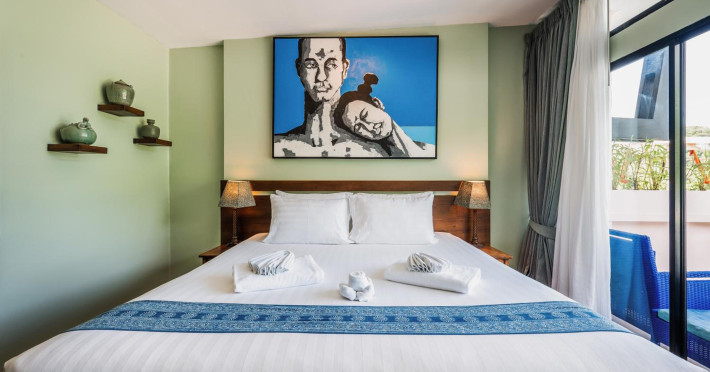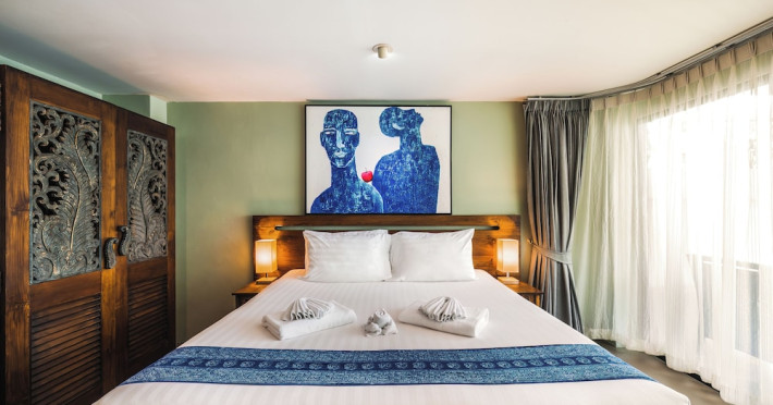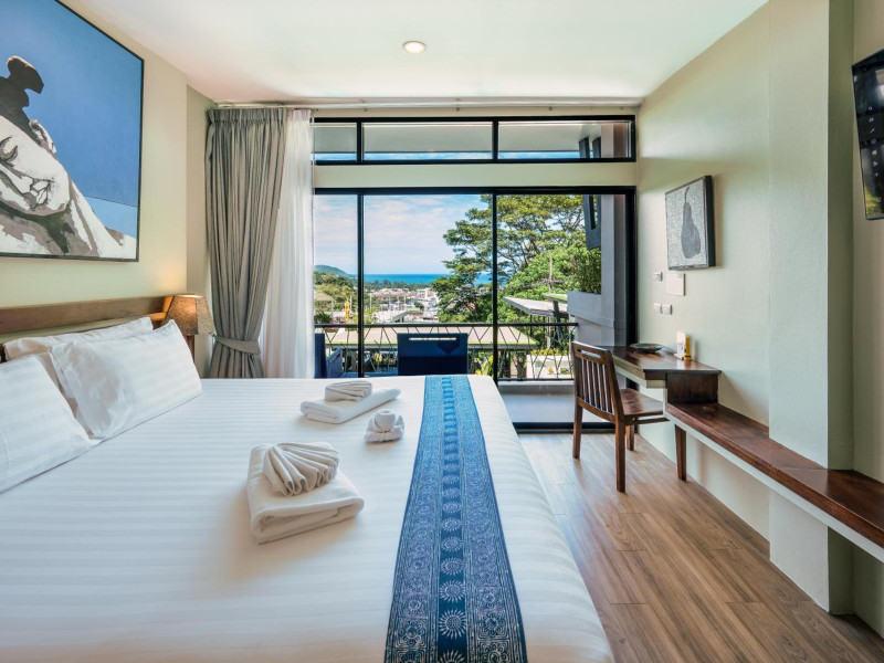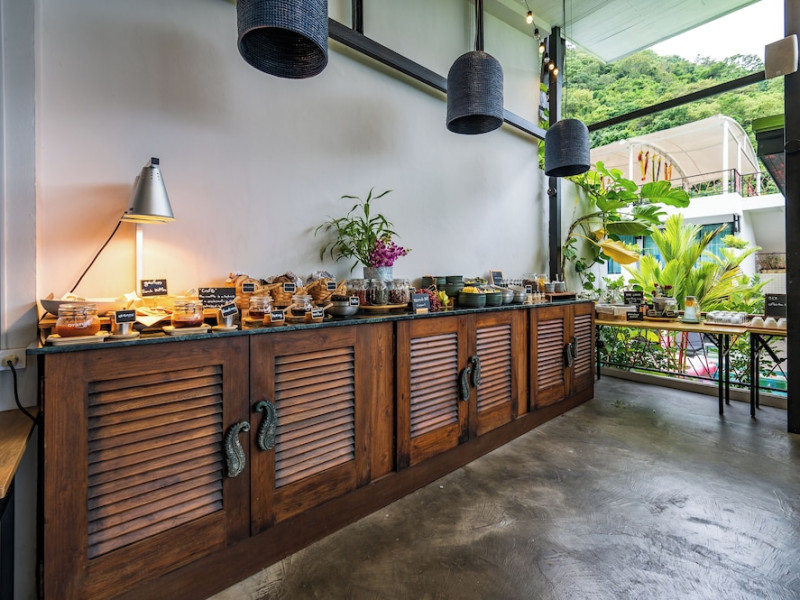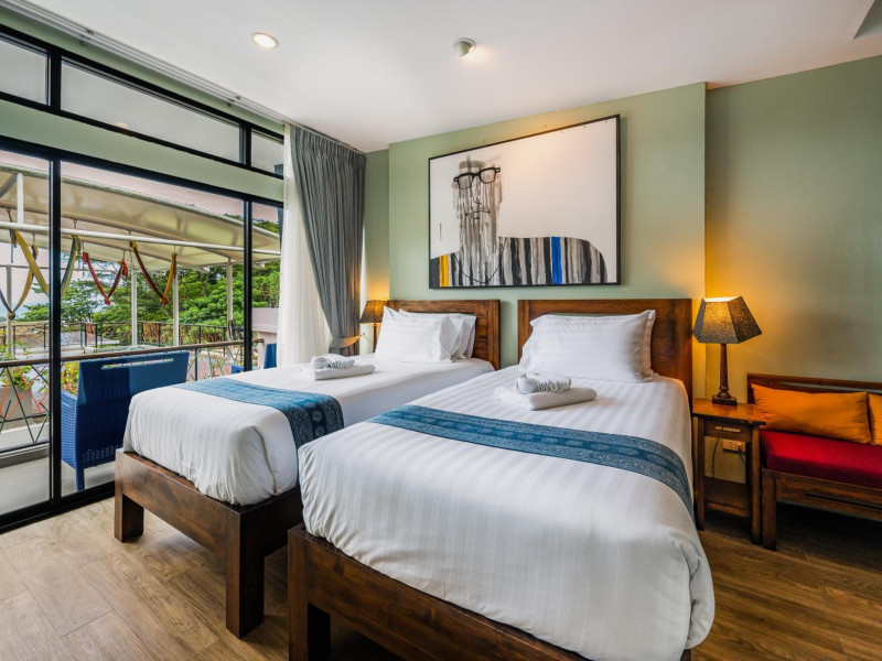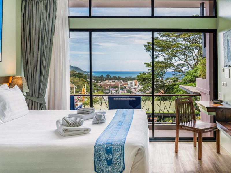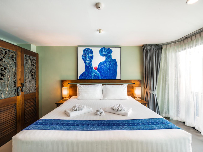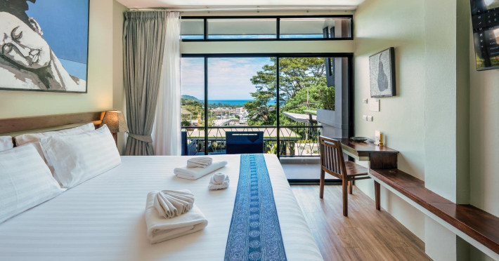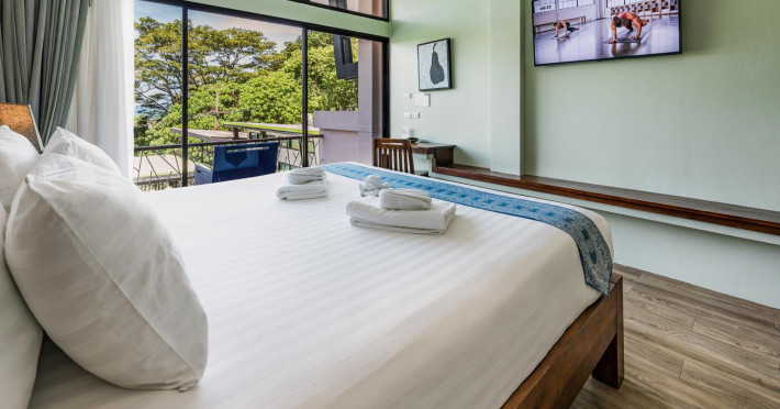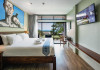 The property features 42 elegantly designed, air-conditioned rooms, many with private balconies or terraces offering ocean or pool views. Each room is adorned with handcrafted Thai teak furniture and unique artwork, and includes a 43-inch Smart TV, complimentary wireless internet, a refrigerator, minibar, and tea/coffee making facilities. Private bathrooms are equipped with showers, complimentary toiletries, and bathrobes. Blackout curtains are also available for guest comfort.