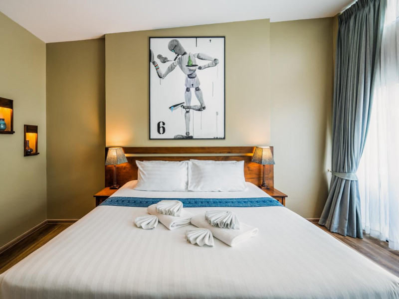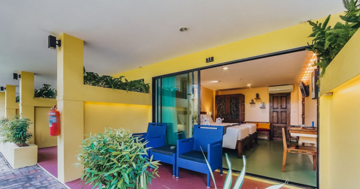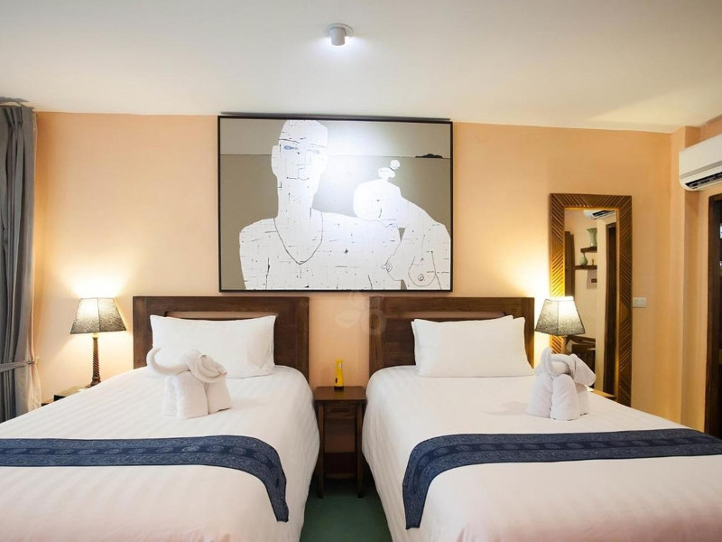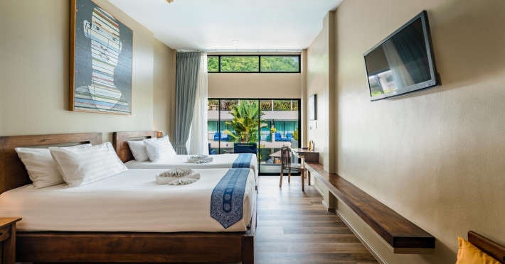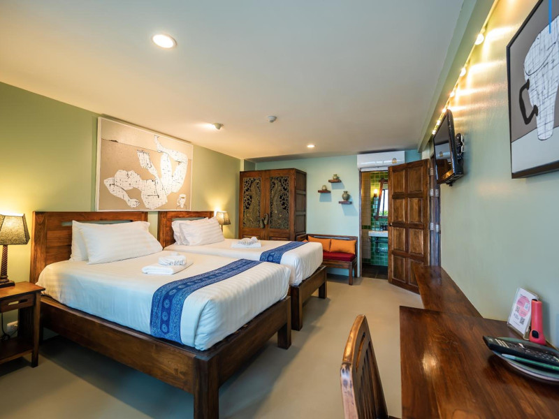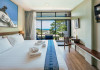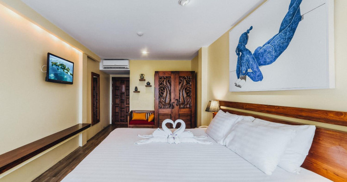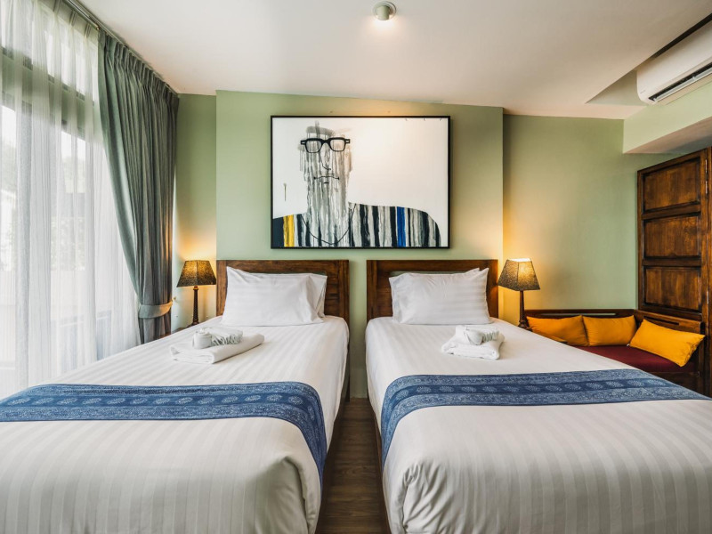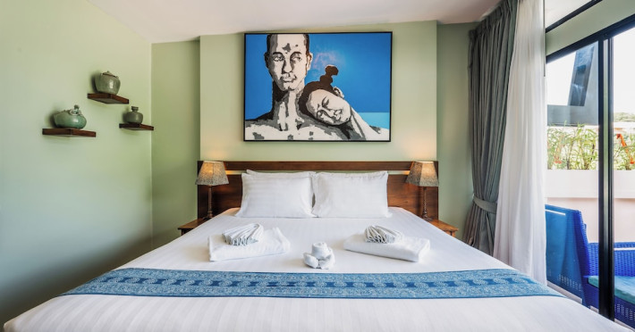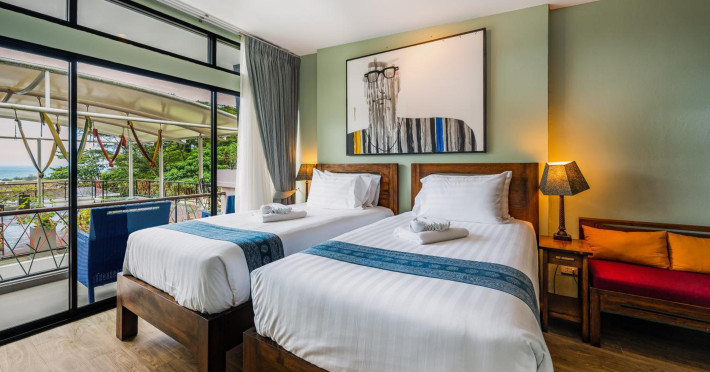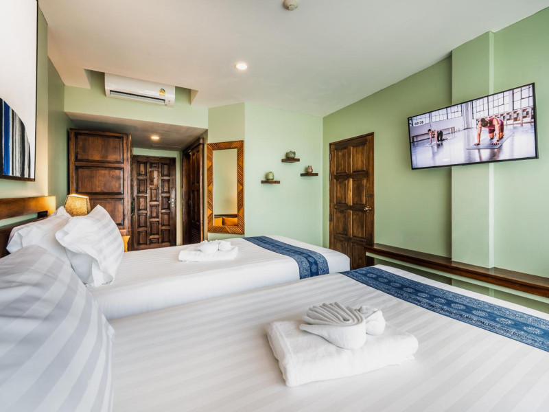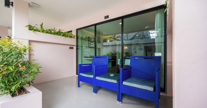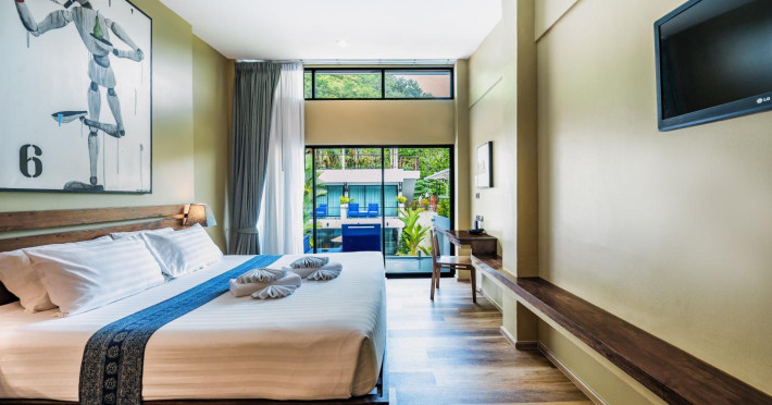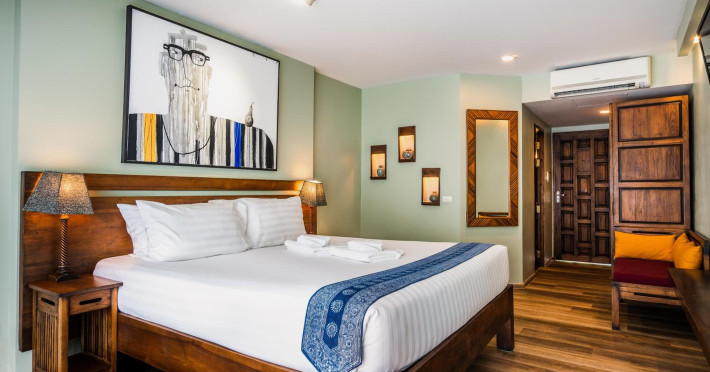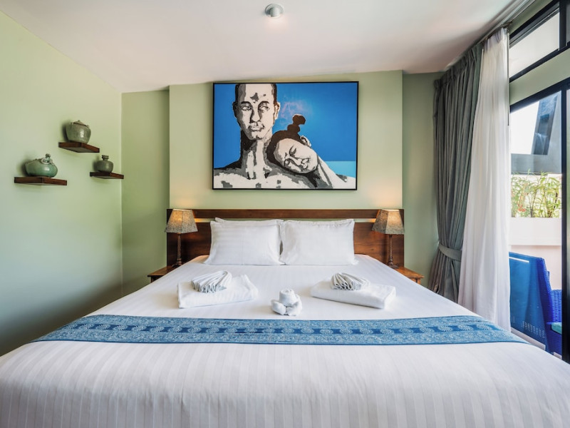 The property features 42 elegantly designed, air-conditioned rooms, many with private balconies or terraces offering ocean or pool views. Each room is adorned with handcrafted Thai teak furniture and unique artwork, and includes a 43-inch Smart TV, complimentary wireless internet, a refrigerator, minibar, and tea/coffee making facilities. Private bathrooms are equipped with showers, complimentary toiletries, and bathrobes. Blackout curtains are also available for guest comfort.