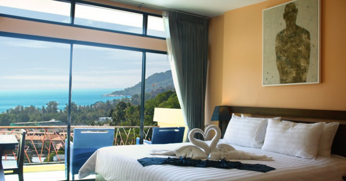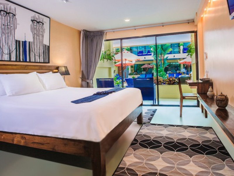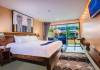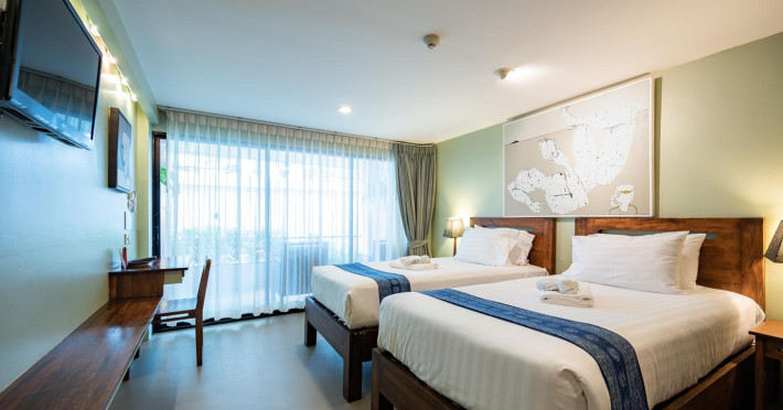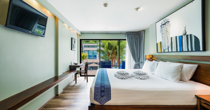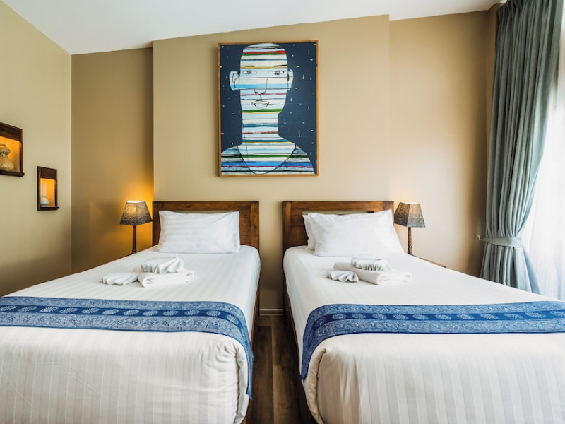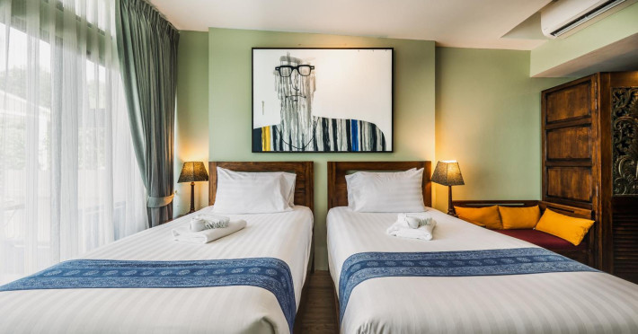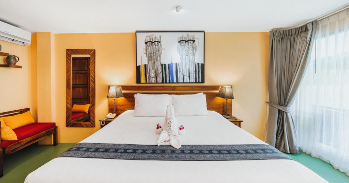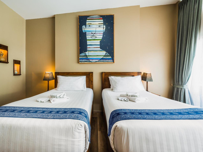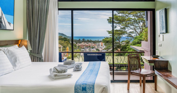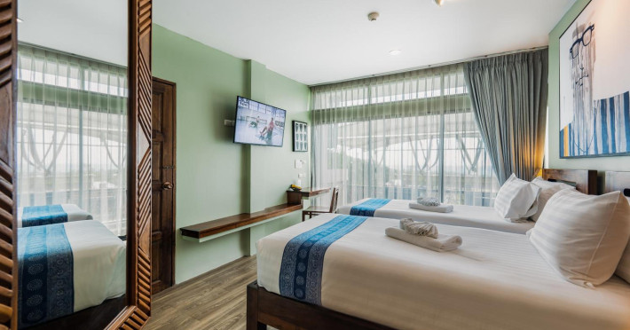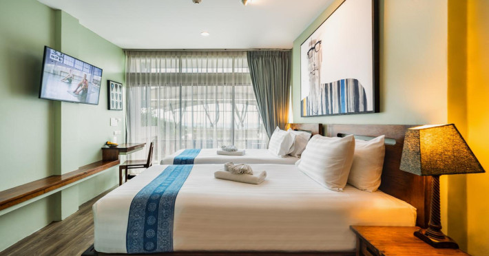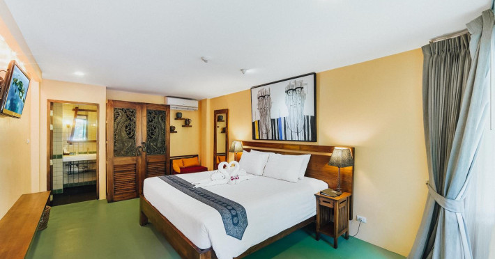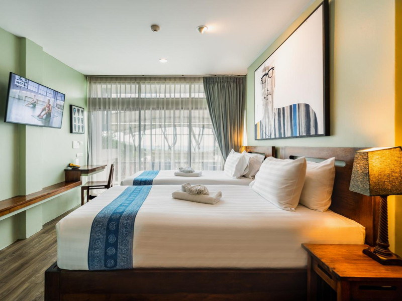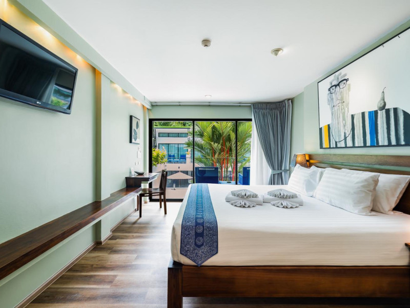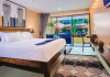 The property features 42 elegantly designed, air-conditioned rooms, many with private balconies or terraces offering ocean or pool views. Each room is adorned with handcrafted Thai teak furniture and unique artwork, and includes a 43-inch Smart TV, complimentary wireless internet, a refrigerator, minibar, and tea/coffee making facilities. Private bathrooms are equipped with showers, complimentary toiletries, and bathrobes. Blackout curtains are also available for guest comfort.
