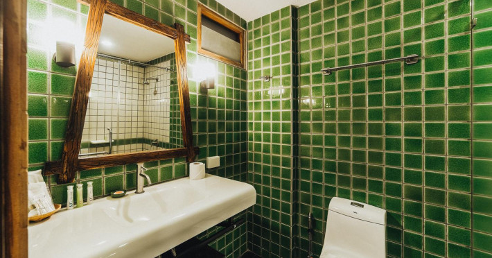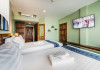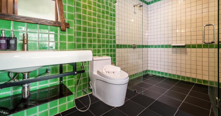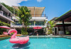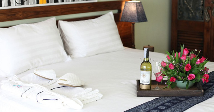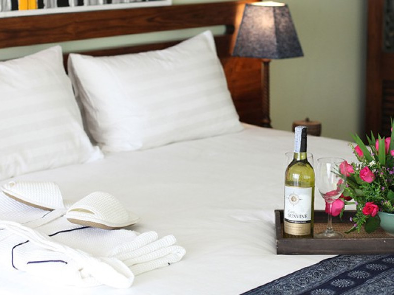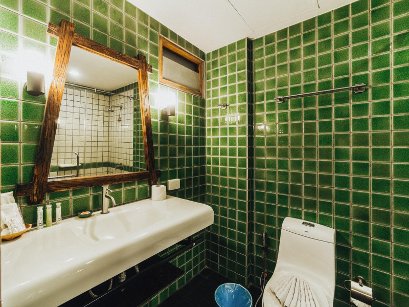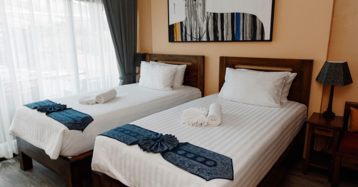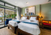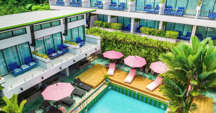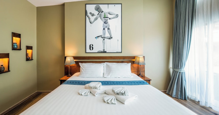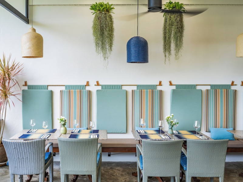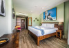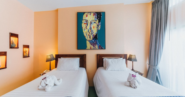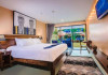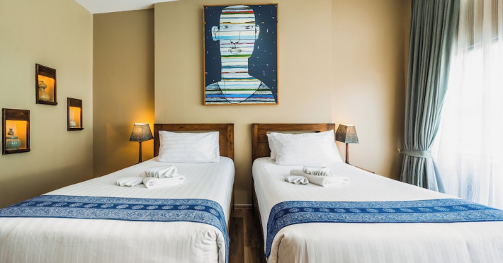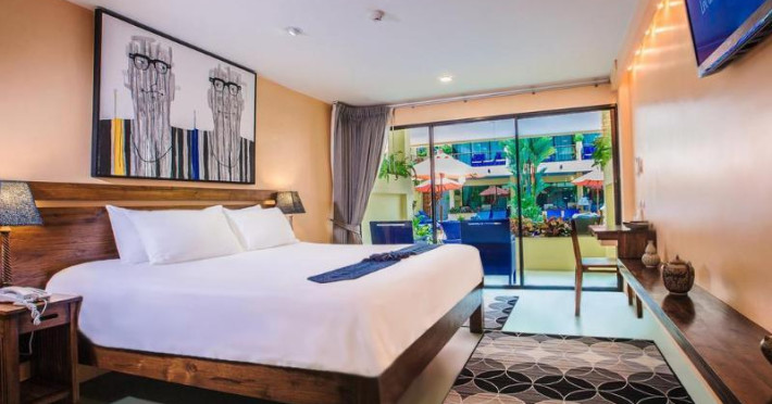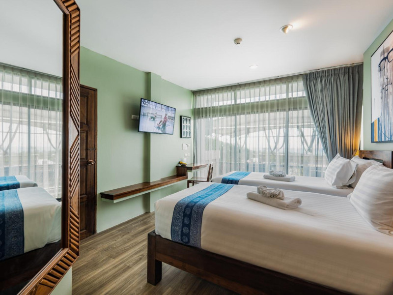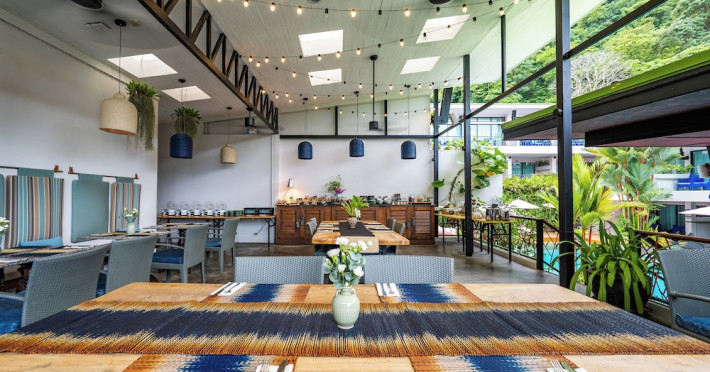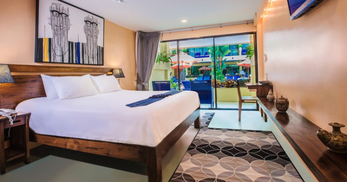 The property features 42 elegantly designed, air-conditioned rooms, many with private balconies or terraces offering ocean or pool views. Each room is adorned with handcrafted Thai teak furniture and unique artwork, and includes a 43-inch Smart TV, complimentary wireless internet, a refrigerator, minibar, and tea/coffee making facilities. Private bathrooms are equipped with showers, complimentary toiletries, and bathrobes. Blackout curtains are also available for guest comfort.