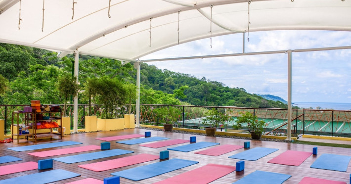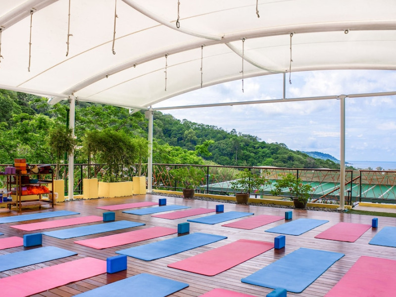Guests can indulge in a full-service spa offering massages, body treatments, facials, and rejuvenating packages, complemented by a steam room and ice bath. Recreational amenities include a refreshing outdoor saltwater pool, rooftop yoga studios, and indoor yoga and meditation spaces. The hotel also offers a wide range of daily activities such as yoga, meditation, cooking classes, detox workshops, art therapies, guided treks, and island trips.