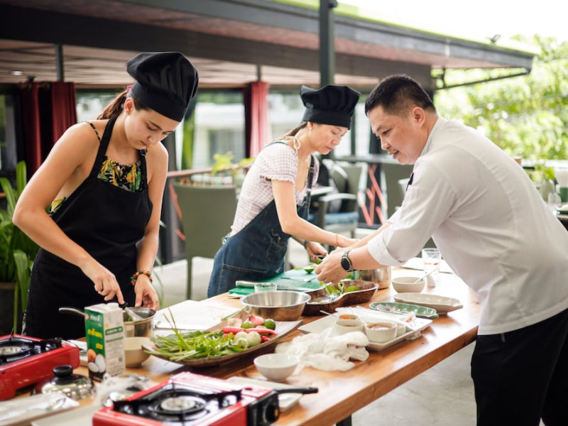 Dining at Prana Eatery is a culinary delight, featuring a mix of Asian fusion, traditional Thai, local, and popular Western dishes, with options for various dietary requirements (vegan, raw, vegetarian). The restaurant includes a bar/lounge and garden views. Buffet breakfast is available daily for a fee, and room service is provided during limited hours. Guests can also enjoy excellent coffee and evening entertainment at the bar.