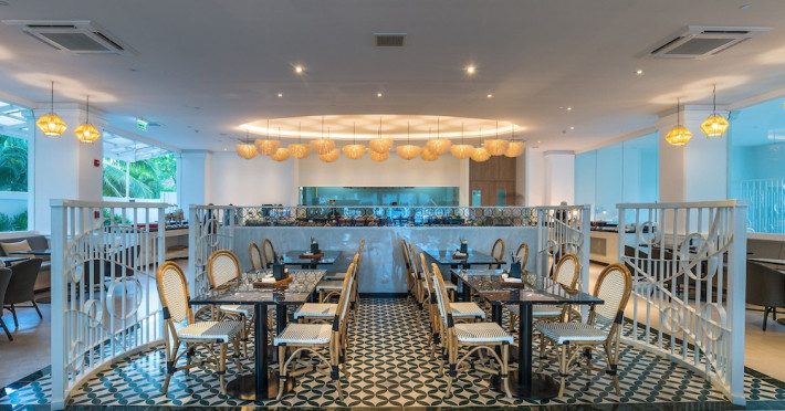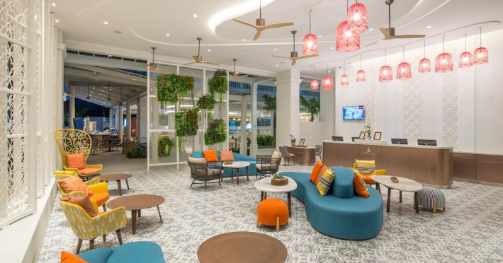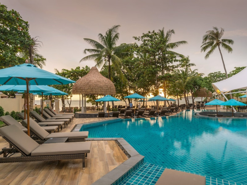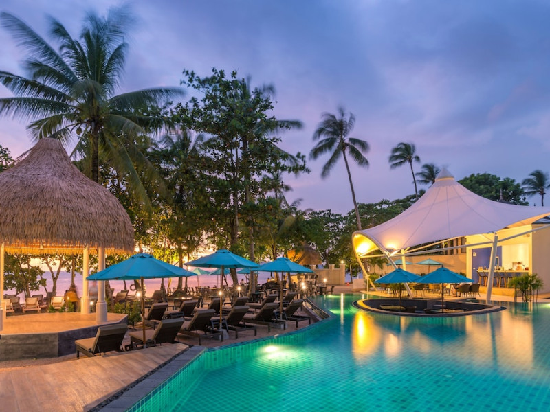 This vibrant resort, designed as a cluster of sleek low-rise buildings that dot the free-form swimming pool and the beachfront terrace, features bright pool access rooms and rooms with private pool; and facilities you will love.