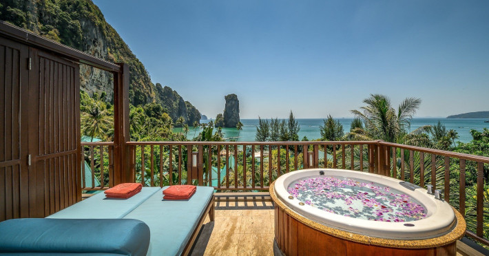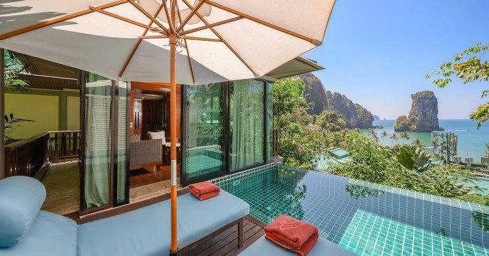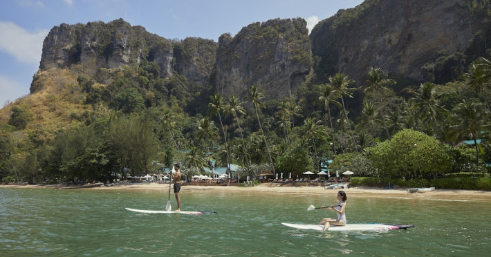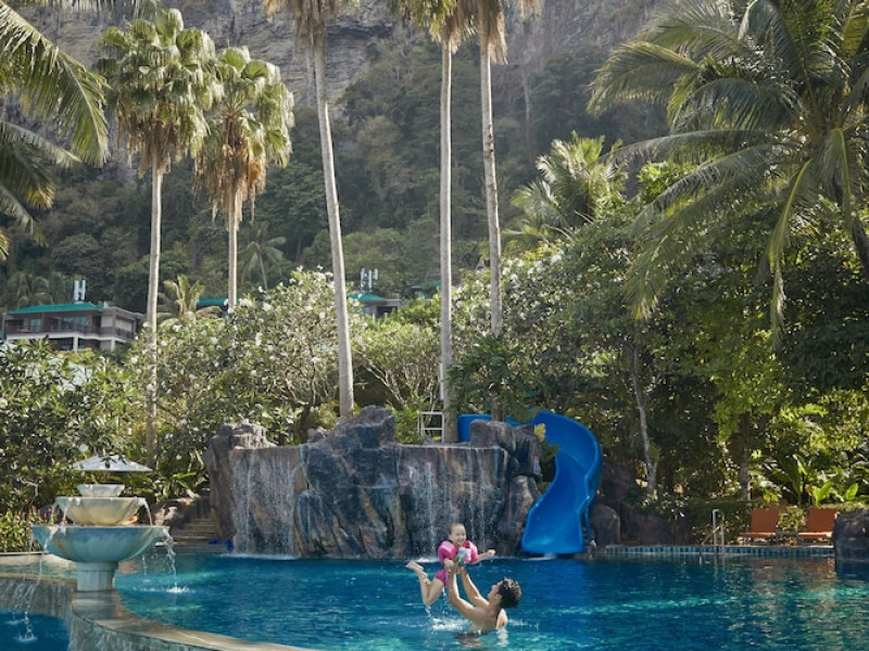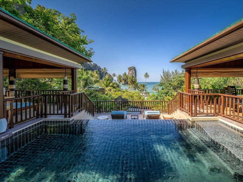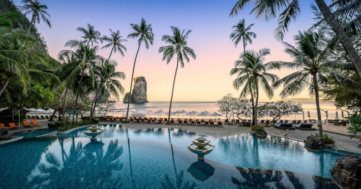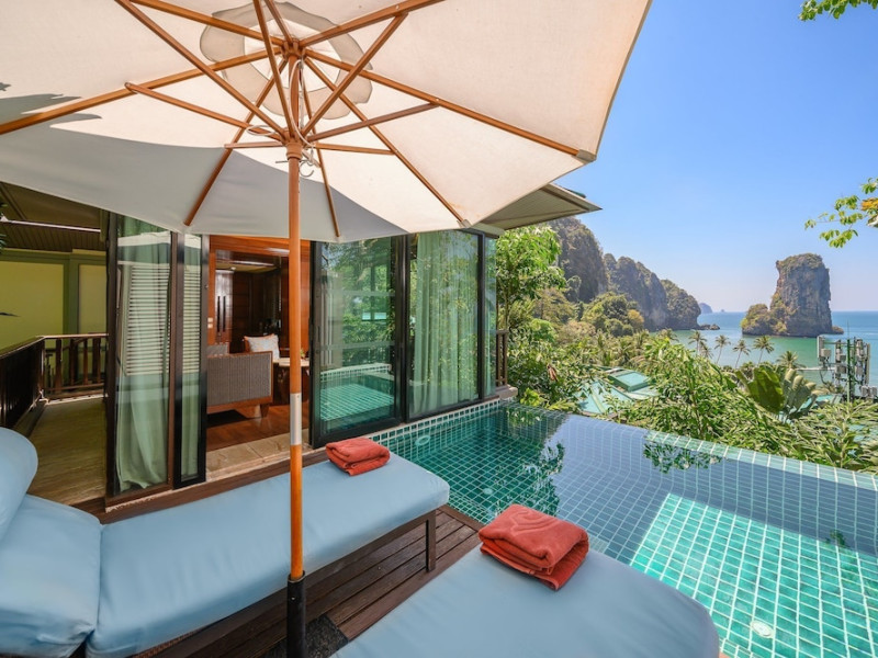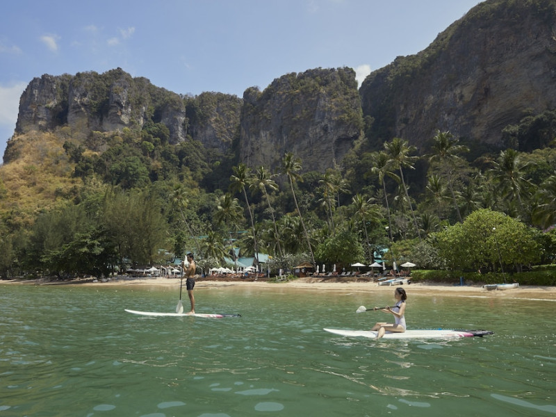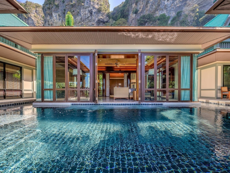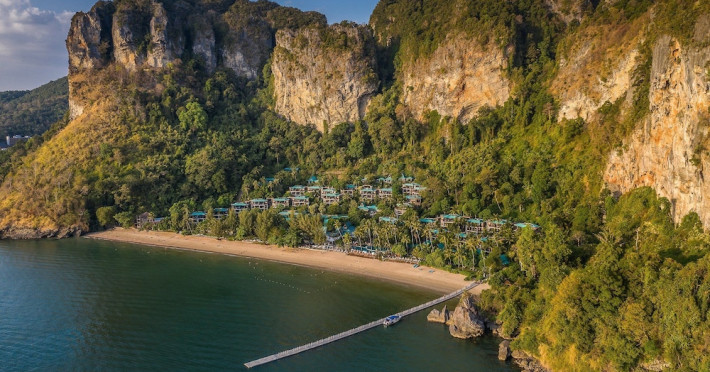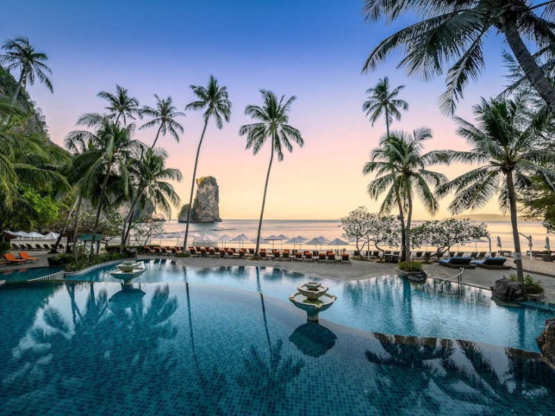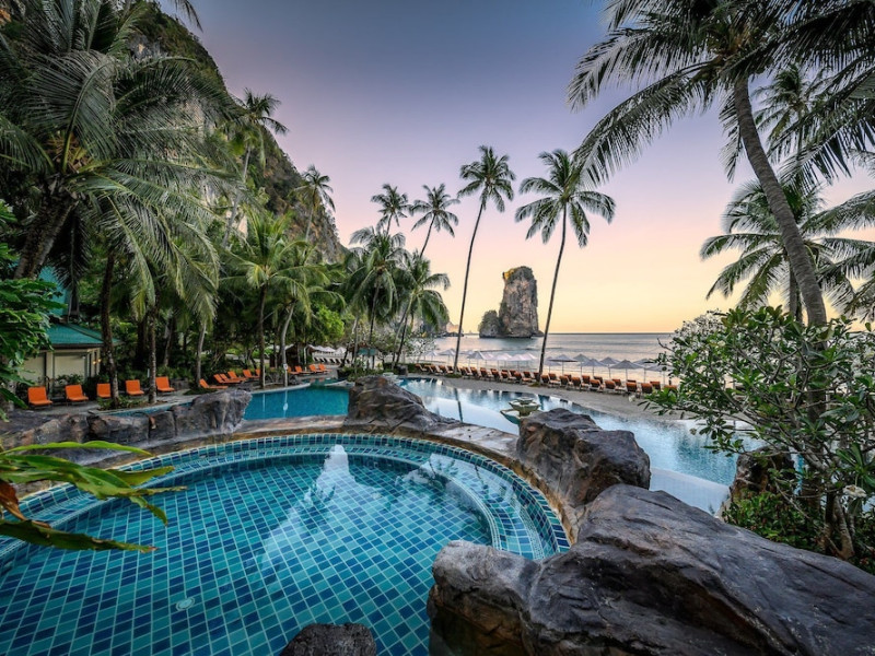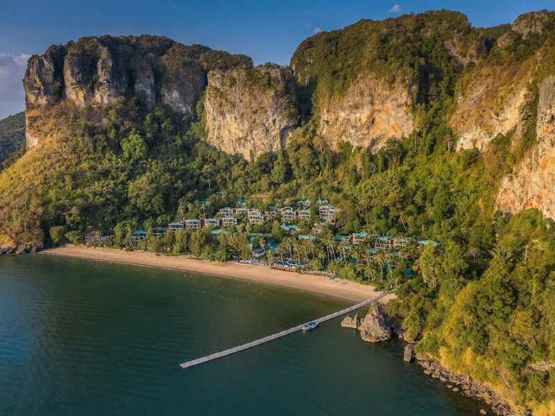 This hotel is set in its own private bay, 'Pai Plong' - only one bay away from Ao Nang Beach. It has a direct beachfront location of 500 metres in length, with stunning views of verdant limestone formations and an extensive expanse of beautiful pristine white sands lapped by crystal clear waters. It can only be accessed via sea, and is 5 minutes by boat from Ao Nang Beach. Phuket is just under 2.5 hours away by land and approximately 1 hour away by sea. The hotel is just 30 minutes from Krabi International Airport.