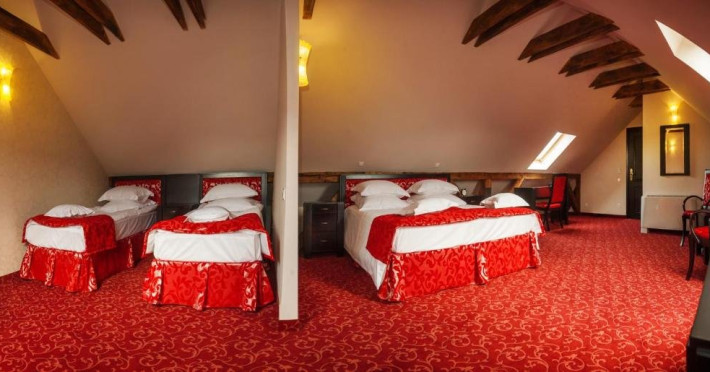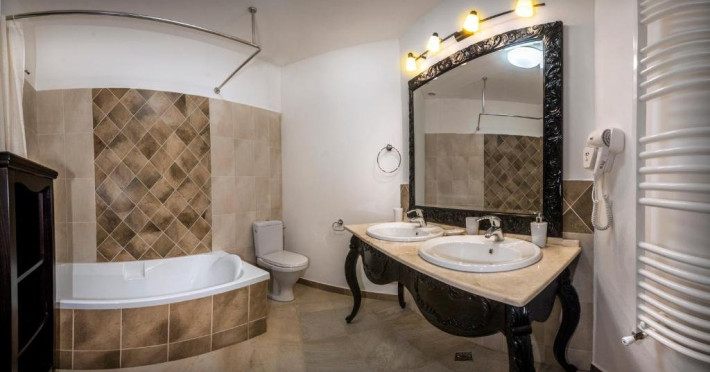 Situat in centrul orasului, la 2 minute de mers pe jos fata de Cetatea Medievala, Central Park - clasificat 4 stele, este un boutique hotel cu 33 de camere . Cladirea originala a fost ridicata in 1897 de catre Josef B. Teutsch, un renumit comerciant al vremurilor sale . Au fost efectuate lucrari importante de amenajari specifice si restaurari profunde ale elementelor decorative iari n forma actuala, cladirea este o combinatie armonioasa de elemente clasice si moderne. Apartamentul prezidential al hotelului este un loc extraordinar de rafinat si confortabil, unde luxul si eleganta se imbina perfect. Camera spatioas este aranjata cu o atentie deosebit la detalii, iar canapeaua din camera de zi este confortabila si invita la relaxare, in timp ce balconul ofera o priveliste impresionanta spre cetate. In dormitor, patul regal asigura relaxare si odihna in voie, in timp ce decorul deosebit incanta prin eleganta si rafinament. Fiecare detaliu pare s fie la locul lui si sa contribuie la crearea unei atmosfere placute si relaxante. Camera DublA cu Vedere la Cetate este o oaza de liniste si relaxare, cu o priveliste deosebita oferita de cetatea istorica din apropiere. Lumina naturala inunda camera, evidentiind cu stralucire toate elementele de decor si detaliile de finisare. Patul confortabil cu lenjeria alba si moale garanteaza un somn odihnitor si linistit. Mobilierul este elegant si modern, iar amenajarea interioara creeaza o atmosfera calda si primitoare. Baia este spatioasa si eleganta, cu toate facilitatile necesare pentru a face experienta cat mai confortabila. Camera Superioara cu vedere spre cetate si pat cu baldachin este un loc desprins dintr-un vis romantic. Decorata cu gust si atentie la detalii, aceasta camera spatioasa ofera tot confortul necesar pentru o experienta memorabila. Baldachinul patului de-un rosu aprins confera o intimitate speciala, iar lenjeria alba si moale invita si taie rasuflarea, aducand in camera un aer de mister si romantism. Camera dubla DELUXE este un sanctuar de liniste si relaxare. Situata intr-o zona linistita a hotelului, aceasta camera este o oaza de calm si de intimitate. Apartamentul FAMILY de la mansarda este o optiune excelenta pentru o familie care doreste confort si intimitate. Cu o suprafata generoasa a camerei este o adevrata oaza de relaxare in mijlocul agitatiei orasului. Patul matrimonial si cele doua paturi single sunt lenjerii moi si confortabile, saltele si perne de foarte buna calitate necesare pentru un somn odihnitor si linistit . Este prevazut cu toate facilitatile moderne, inclusiv acces la internet, televizor, minibar si seif iar baia eleganta, de dimensiuni generoase, dispune de articole de toaleta de calitate si de un set complet de prosoape pentru fiecare membru al familiei. Camera dubla in stil mansarda, cu elementele masive vizibile ale structurii din lemn explodeaza intr-un amestec armonios de traditional si modern. Bijuterie unica in cadrul hotelului, cu o atmosfera calda si primitoare, camera este atent decorata cu mult bun-gust si cu o atentie deosebita la detalii. Elementele de lemn, detaliile de finisare precum si mobilierul modern se imbina intr-un mod armonios pentru a crea o atmosfera relaxanta si placuta iar pozitionarea la un nivel superior al hotelului vine cu un plus de liniste pentru odihna bine-meritata dup o zi incarcata. Camera Dubla Deluxe cu Balcon, spatioasa si luminoasa, decorata cu gust si eleganta este alegerea perfecta pentru cei care doresc sa se bucure de un sejur relaxant si confortabil. Balconul privat ofera o priveliste minunata spre curtea interioara, plina de plante si verdeata iar dimineata, dup un somn odihnitor aerul proaspat si racoros de afara, ofera ocazia perfecta pentru o cafea delicioasa sub razele soarelui. Baia generoasa si eleganta este dotata cu articole de toaleta de calitate iar prosoapele moi si pufoase completeaza sentimentul de lux si comfort.