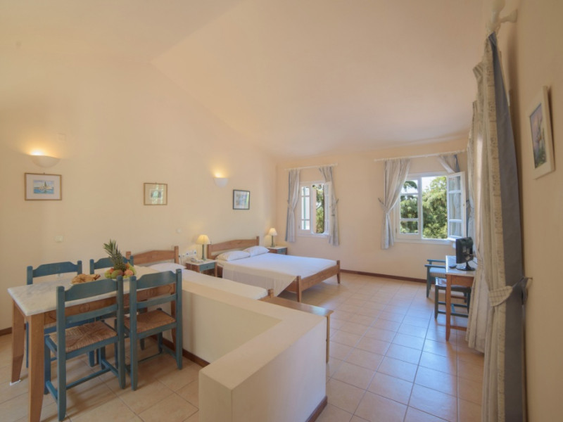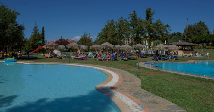 The family-friendly club resort is located in the northern region on the beautiful island of Corfu, situated in the picturesque village of Acharavi, where guests will find restaurants, bars, nightlife, shops and a bus station. The 8-kilometre-long beach of Acharavi is just a 15 minute walk from the hotel's entrance. Roda is approximately 1.5 km from the hotel and Ioannis Kapodistrias airport is around 40 km away.