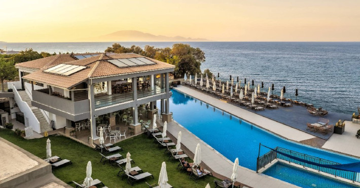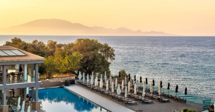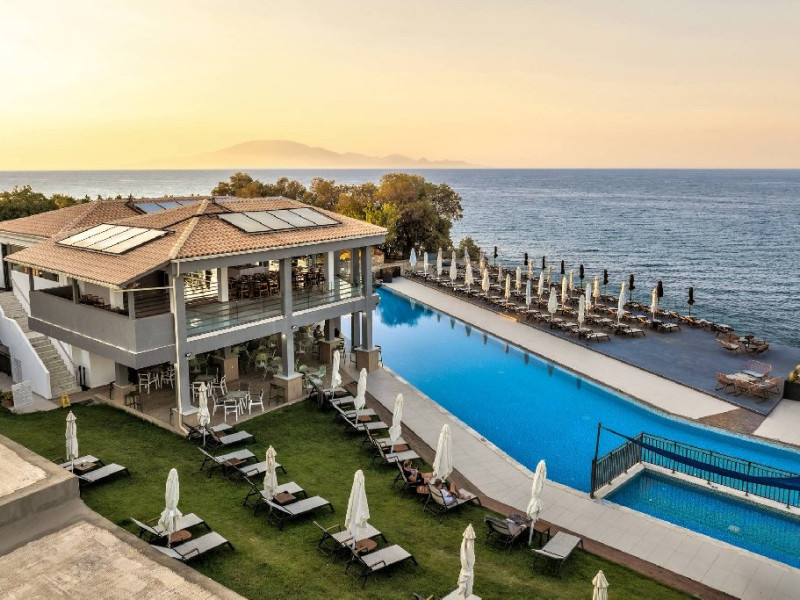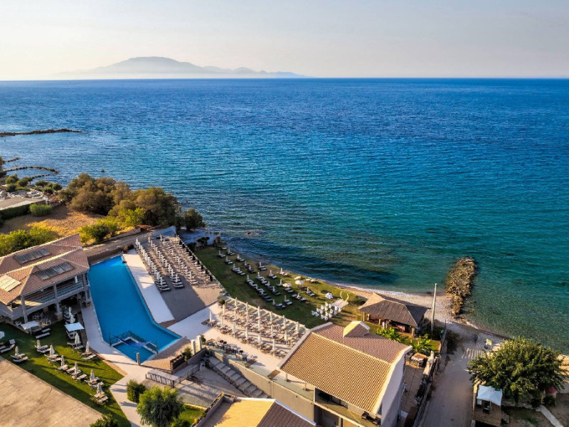 Puncte forte ale ofertei Noutate in oferta! Recomandat in special. Acesta este un hotel complet nou, care va fi o alegere excelenta pentru o vacanta luxoasa si linistita. Camerele bine echipate, cu acces direct la piscina, vor fi cu siguranta pe placul tuturor. Locatia pitoreasca a hotelului, inconjurata de livezi de maslini, ofera o atmosfera unica. Va invitam cu drag! Hotel Receptie 24h/7 1 piscina cu sezlonguri si umbrele, bazin pentru copii Atractii pentru copii: loc de joaca Atractii pentru adulti: sala de fitness, zona wellness (contra cost) Restaurante: restaurant principal, restaurant a la carte (contra cost), bar la piscina, bar pe plaja (contra cost) Alte informatii: servicii de babysitting (contra cost), spalatorie si calcat rufe (contra cost), terasa pentru plaja, depozit de bagaje Wi-Fi gratuit in intregul complex Localizare La cca. 15 km de aeroport La cca. 10 km de orasul Zakynthos si cca. 3 km de centrul statiunii Tsilivi Cea mai apropiata statie de autobuz se afla la 450 m Situat in satul pitoresc Kipseli, pe coasta de est a insulei Zakynthos Face parte din complexul mai mare Cavo Orient, unde se afla majoritatea facilitatilor disponibile pentru oaspeti Imprejurimi verzi cu livezi de maslini atmosfera de liniste si apropiere de natura Plaja Plaja situata direct langa hotel Plaja cu nisip si pietris Prosoape de plaja disponibile gratuit (posibil depozit) Serviciu de plaja gratuit (sezlonguri, umbrele) Mese All Inclusive: Mic dejun: 07:0010:00 Pranz: 13:0015:00 Cina: 18:3021:00 tip bufet in restaurantul principal Restaurante: Restaurant principal tip bufet Baruri: Bar la piscina: gustari intre orele 11:0013:00 si 15:3018:00 (toasturi, sandvisuri, salate, fructe proaspete, prajituri, inghetata) Bar la piscina: bauturi alcoolice si nealcoolice intre 11:0023:00 (cafea, vin de casa, bere la draft, cocktailuri, bauturi alcoolice locale) Program sportiv si de divertisment Pentru toti: Piscina cu sezlonguri si umbrele Pentru copii: Bazin dedicat, loc de joaca Contra cost: Sporturi nautice pe plaja (servicii externe) Alte informatii: Muzica live de 3 ori pe saptamana Camere 30 de camere spatioase, fiecare echipata cu: Aer conditionat TV prin satelit Baie privata cu uscator de par Set gratuit de produse cosmetice Categorie locala 4* Taxa locala Pretul nu include taxa turistica locala de 10 EUR/camera/zi. Taxa este obligatorie si se achita direct la receptie, inainte de cazarea clientilor in hotel.